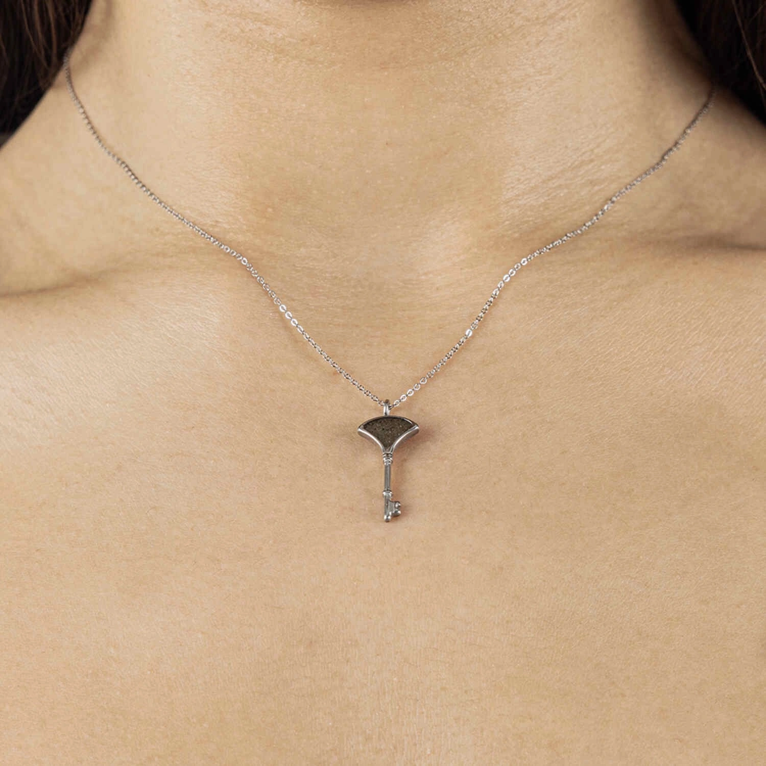 قلادة مفتاح العودة مملوء برمل من أرض فلسطين، مصنوعة من الستانلس ستيل