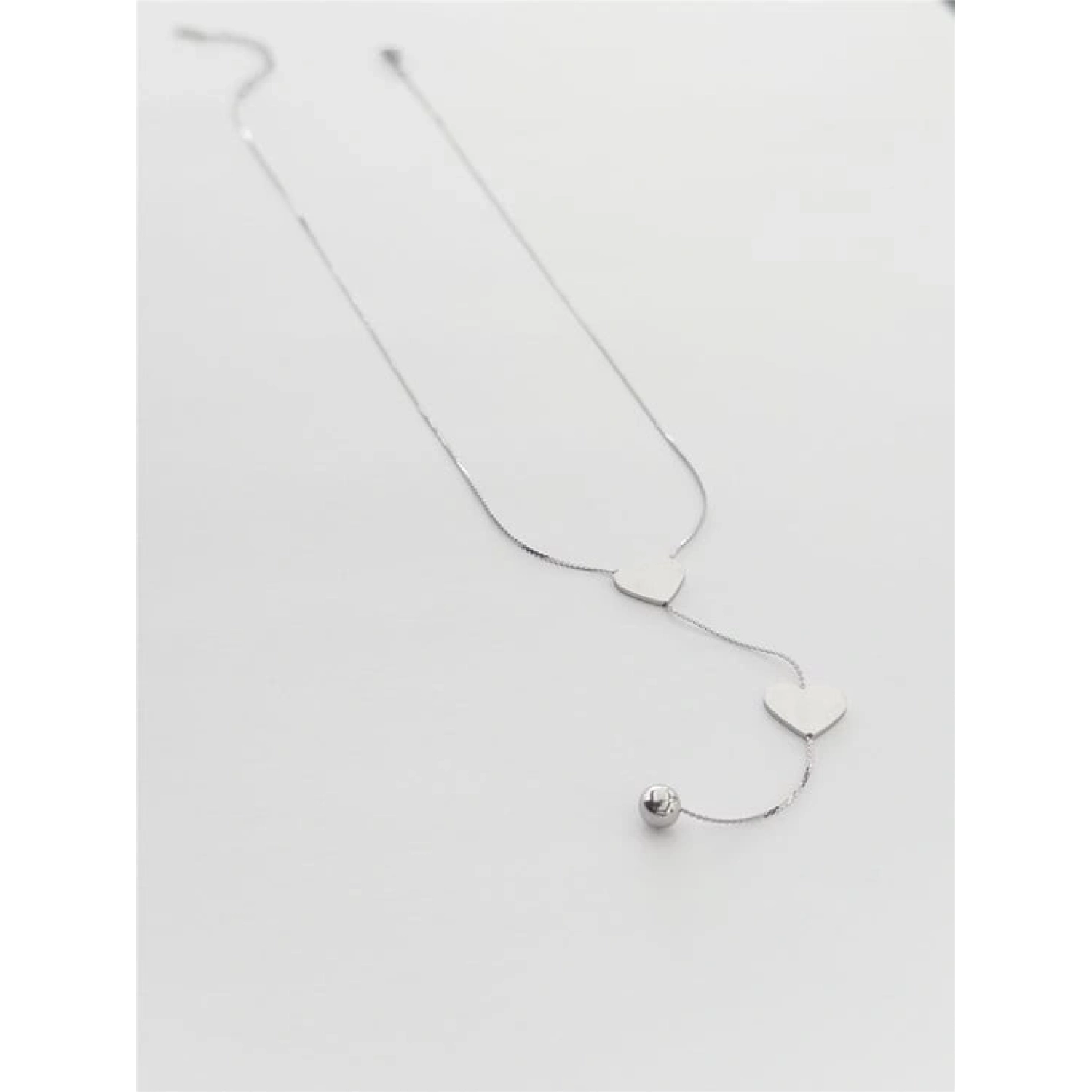 قلادة من ستانلس ستيل عالي الجودة - 45 سم - باللون الفضي مع تعليقة قلوب باللون الفضي