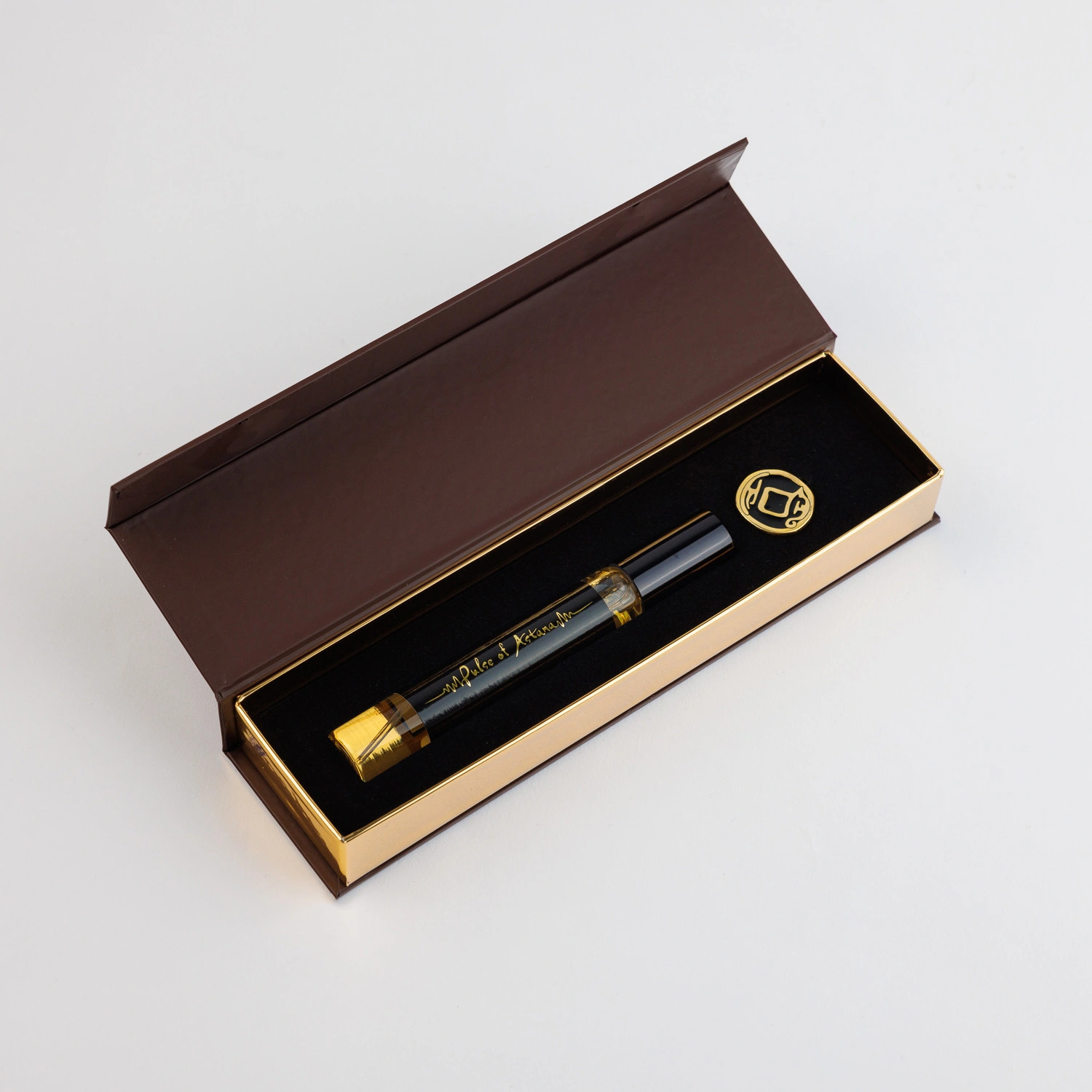 تتكون المجموعة من زجاجة صغيرة الحجم وبسيطة الشكل ورمز عرقي مزخرف على شكل عملة من العصر البرونزي لشعب ساكا مع مشبك سهل الاستخدام لأي قماش