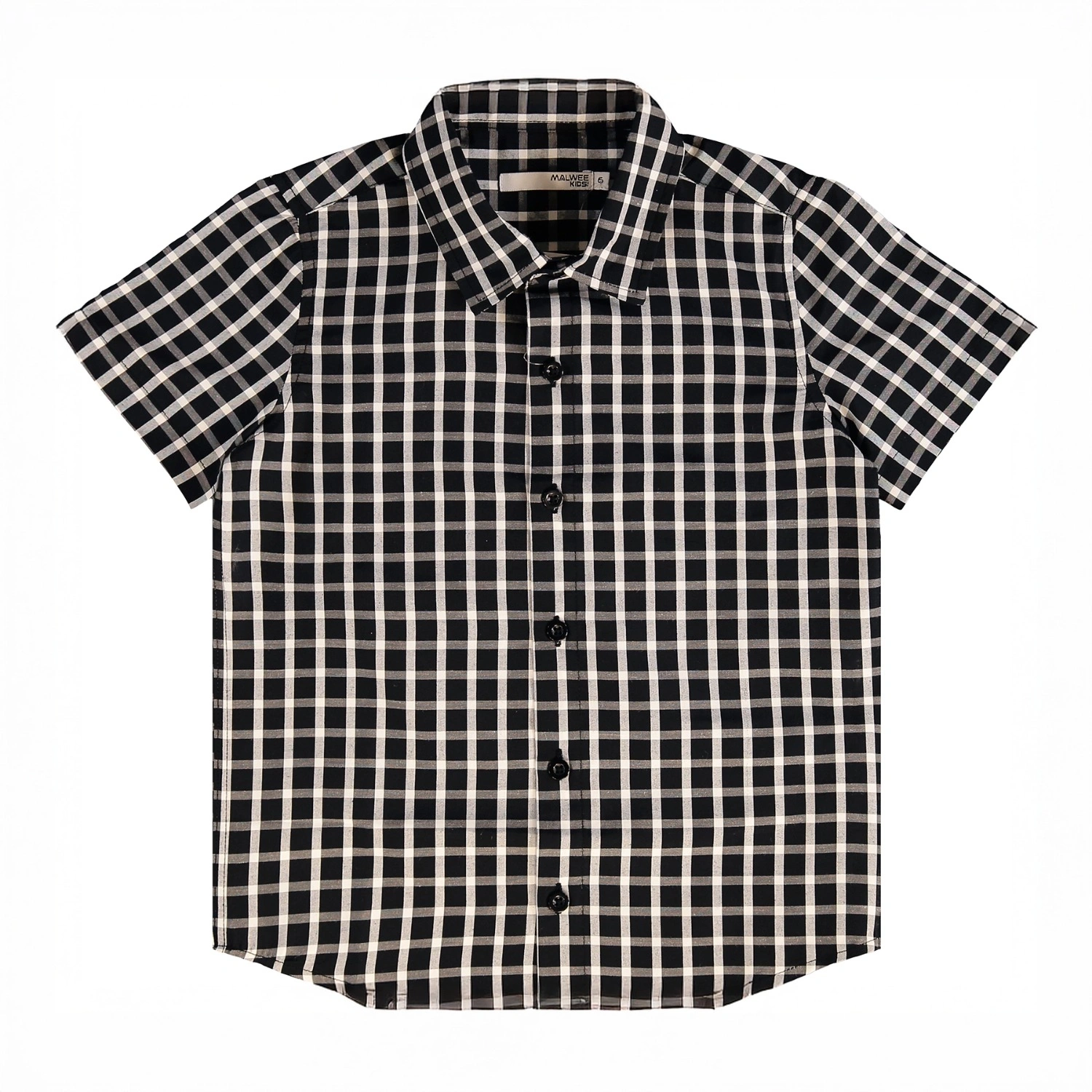 قميص أولاد منقوش بأزرار - كلاسيكي - ابيض واسود