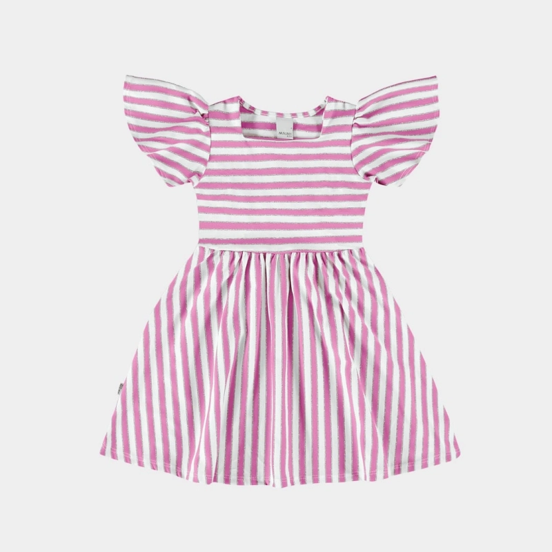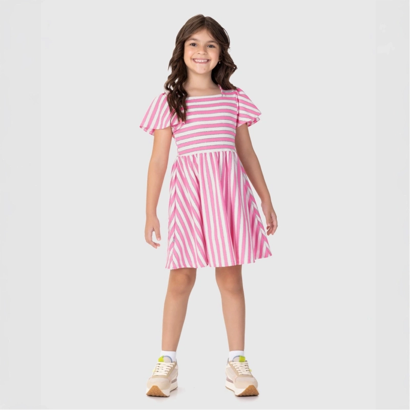 يتميز هذا الفستان التريكو المخطط بأكمام واسعة وقماش ناعم يسمح بحرية الحركة. مصمم لراحة يومية ومثالي للأطفال الصغار النشيطين الذين يعشقون الأناقة والسهولة.