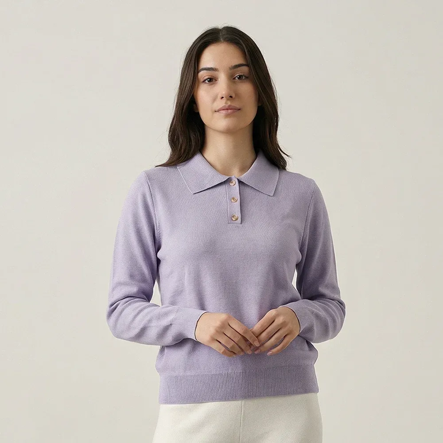 تم تصميم هذه البلوزة النسائية المحبوكة بأكمام طويلة وياقة لتجمع بين الراحة والأناقة العملية. مصنوعة من قماش ناعم ودافئ، توفر قصّة جذابة مع الحفاظ على الراحة طوال اليوم. تضيف الياقة لمسة أنيقة وراقية، مما يجعلها مثالية للإطلالات الكاجوال والكاجوال الذكي.