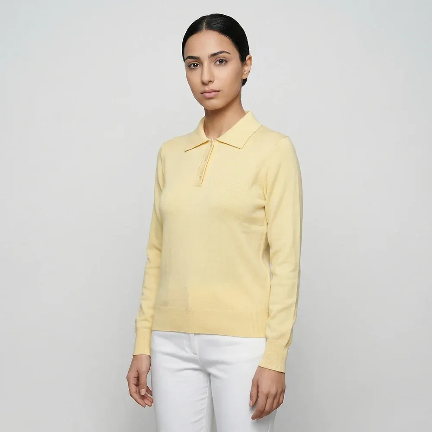 تم تصميم هذه البلوزة النسائية المحبوكة بأكمام طويلة وياقة لتجمع بين الراحة والأناقة العملية. مصنوعة من قماش ناعم ودافئ، توفر قصّة جذابة مع الحفاظ على الراحة طوال اليوم. تضيف الياقة لمسة أنيقة وراقية، مما يجعلها مثالية للإطلالات الكاجوال والكاجوال الذكي.
