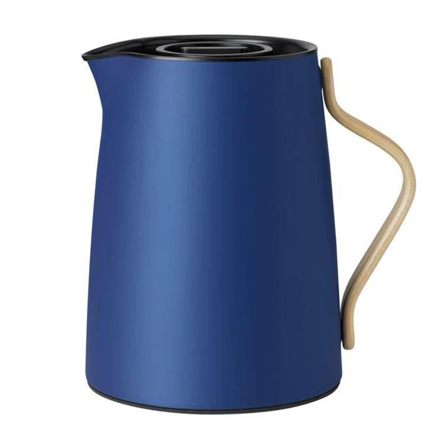 ترمس أنيق بسعة 1 لتر من مجموعة إيما باللون الأزرق الداكن، مصنوع من الفولاذ المقاوم للصدأ ومزود بمقبض من خشب الزان الفاخر. يحافظ على سخونة القهوة لساعات طويلة ويضفي لمسة من الأناقة الاسكندنافية العصرية على طاولتك.