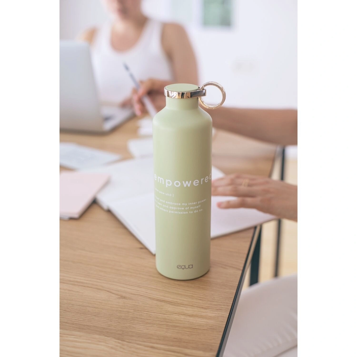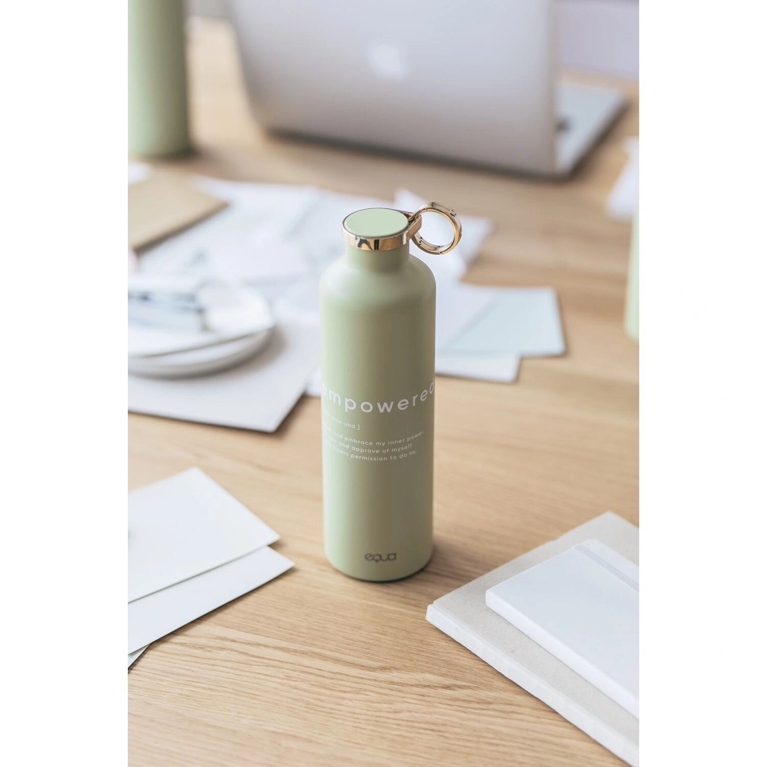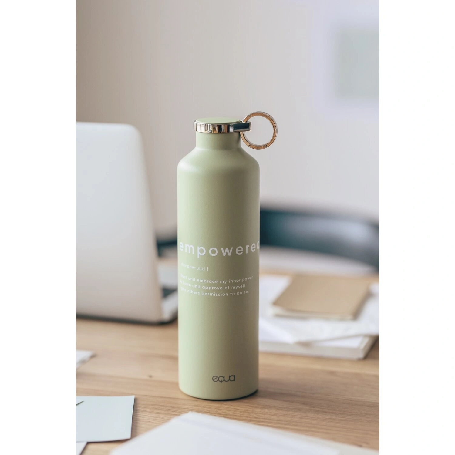 زجاجة ماء أنيقة مصنوعة من الستانلس ستيل بتصميم يحمل عبارة “Empowered”. تحافظ على حرارة أو برودة المشروبات لساعات طويلة، متينة ومقاومة للتسرب، ومثالية لنمط الحياة النشط والمتوازن.680 مل