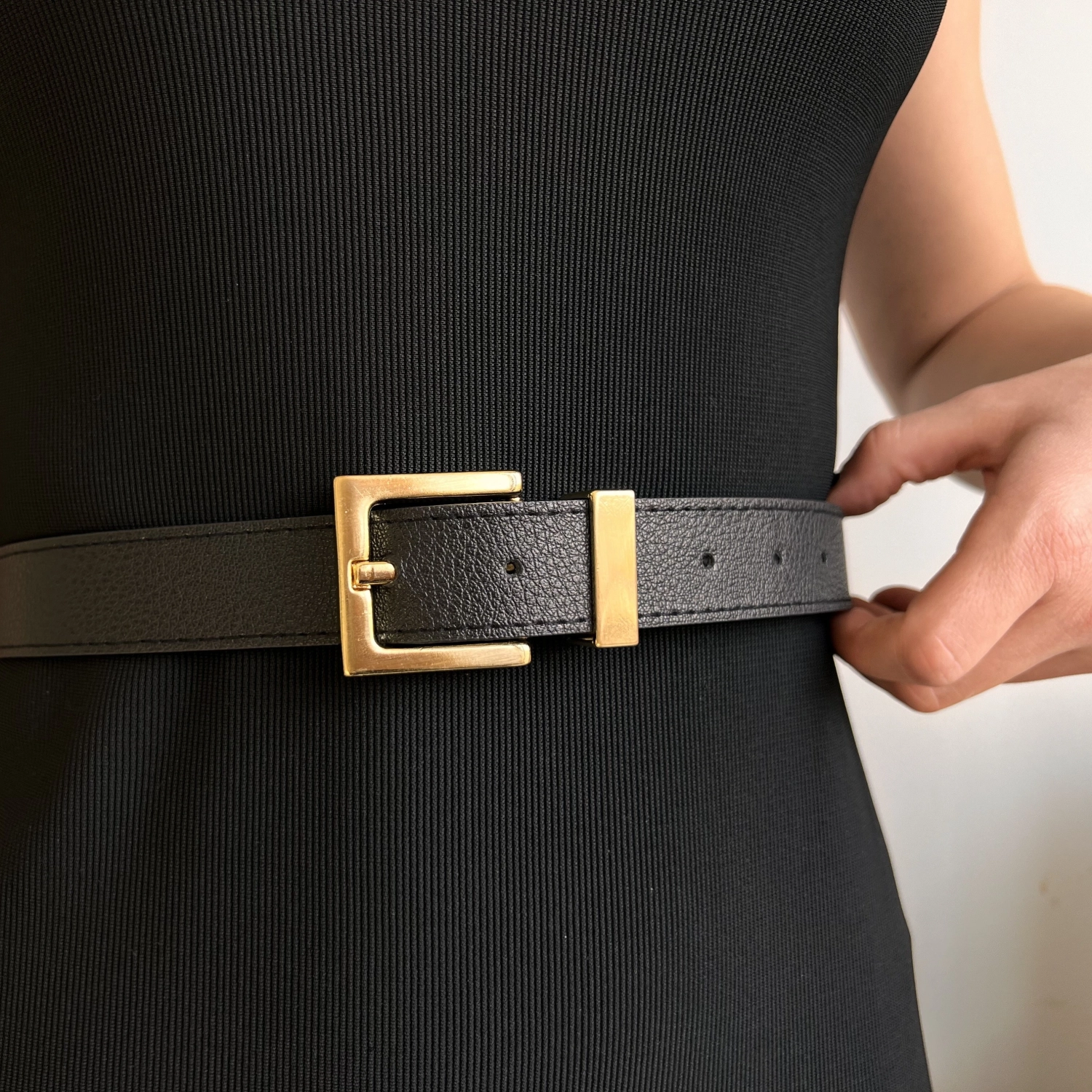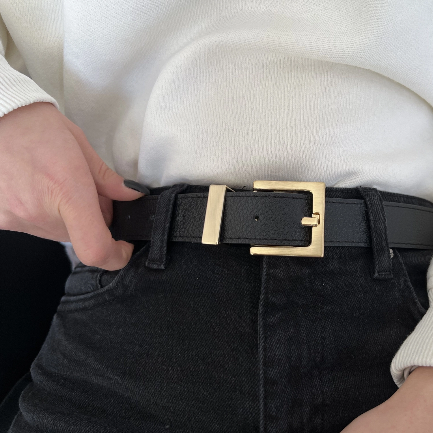 حزام نسائي من الجلد الصناعي بإبزيم مربع طول المنتج: 105 سم عرض المنتج: 3 سم