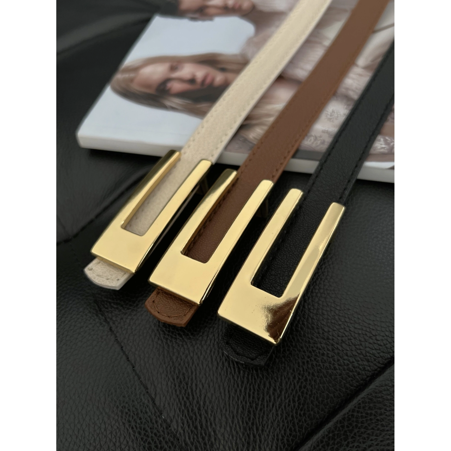 حزام نسائي رفيع من الجلد الصناعي بإبزيم بتصميم مميز