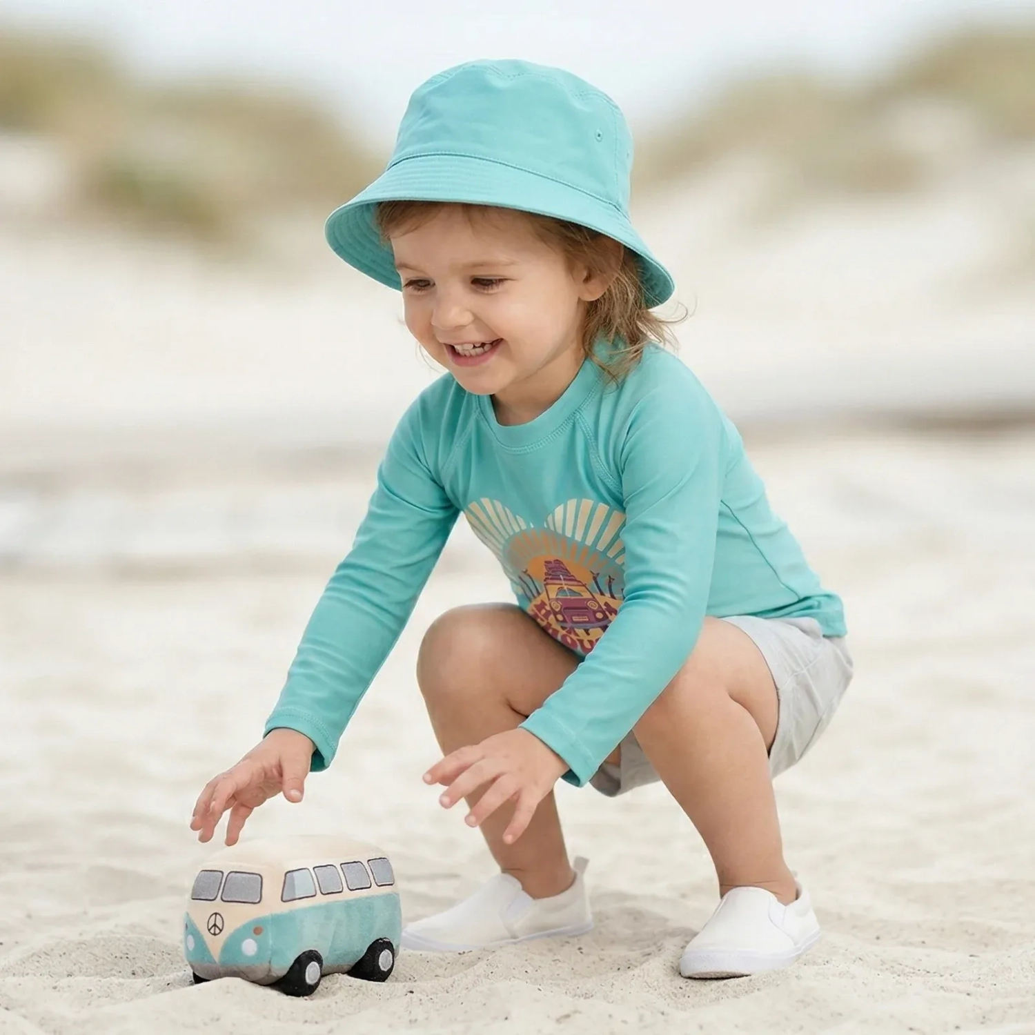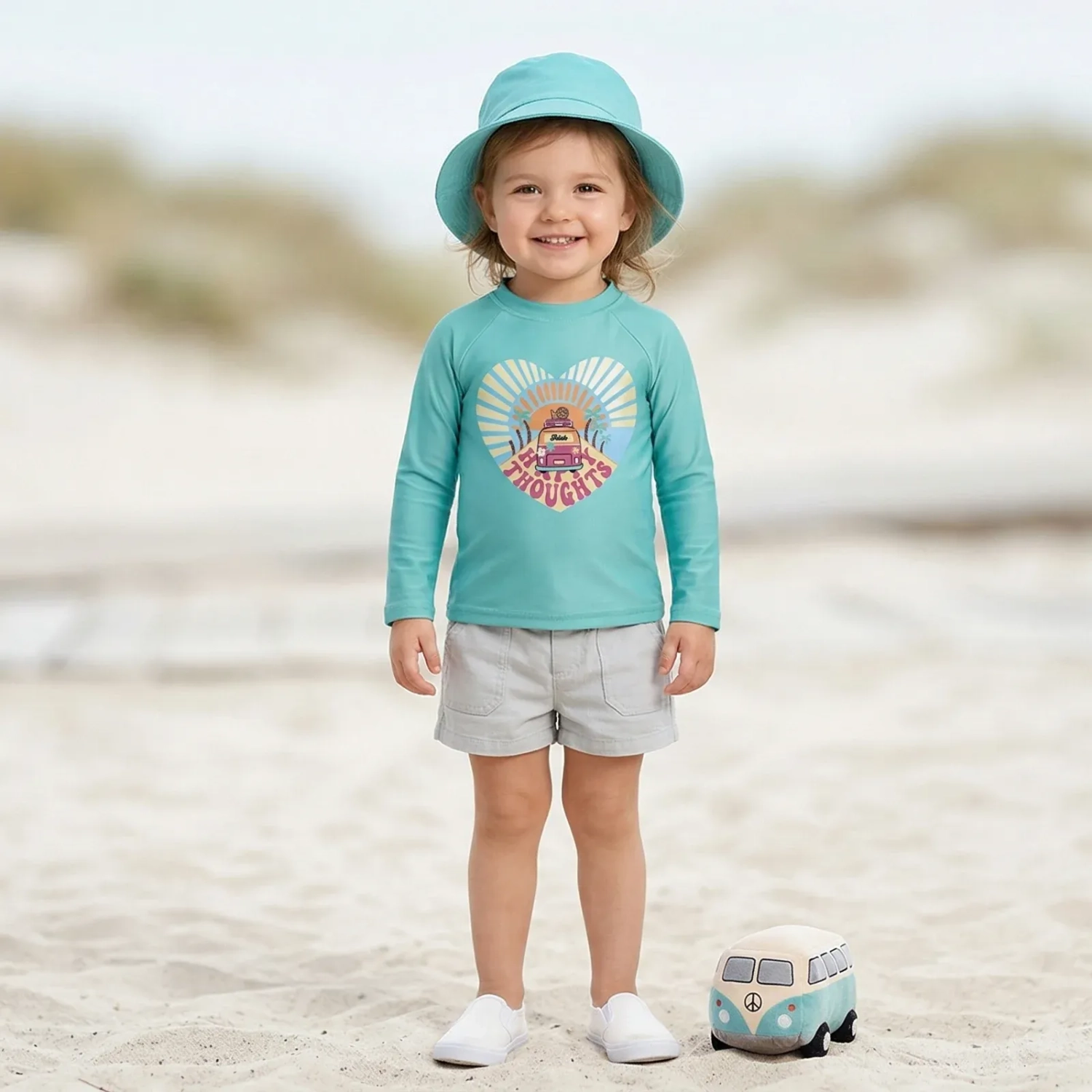 لمغامرات مشمسة،تم تصميم هذا التيشيرت للبنات بمعامل حماية +UV50 وهو مصنوع من قماش شبكي ناعم بأكمام راجلان طويلة وياقة دائرية. يتميز بخفة الوزن والراحة، مما يجعله مثالياً لأيام الشاطئ أو المسبح مع حماية إضافية من الشمس وتصميم أمامي مرح