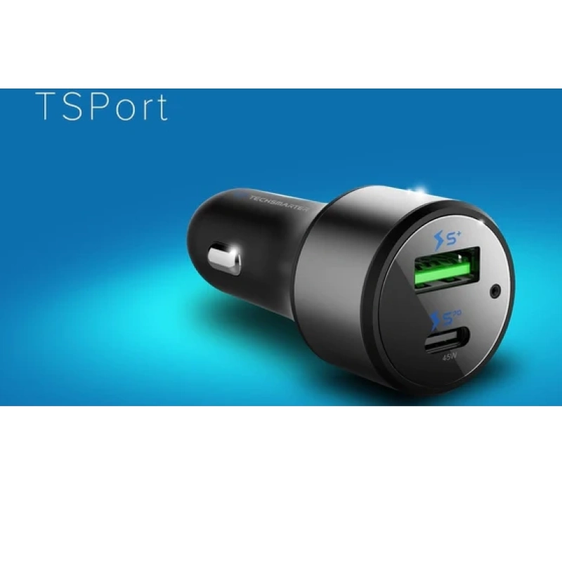 شاحن سيارة مزود بمنفذ USB-C بقدرة 64 واط و منفذ USB بقوة 18 واط، أسود
