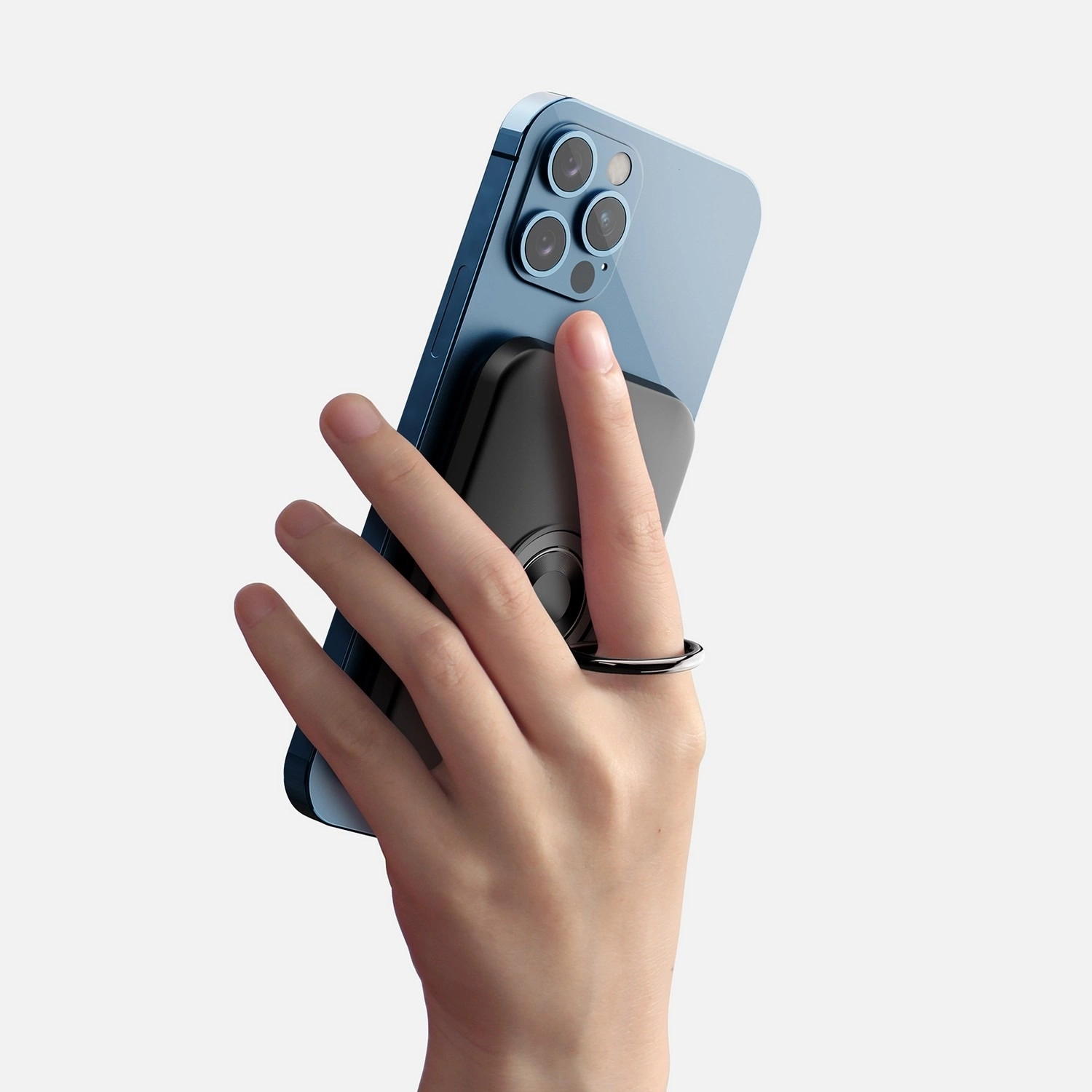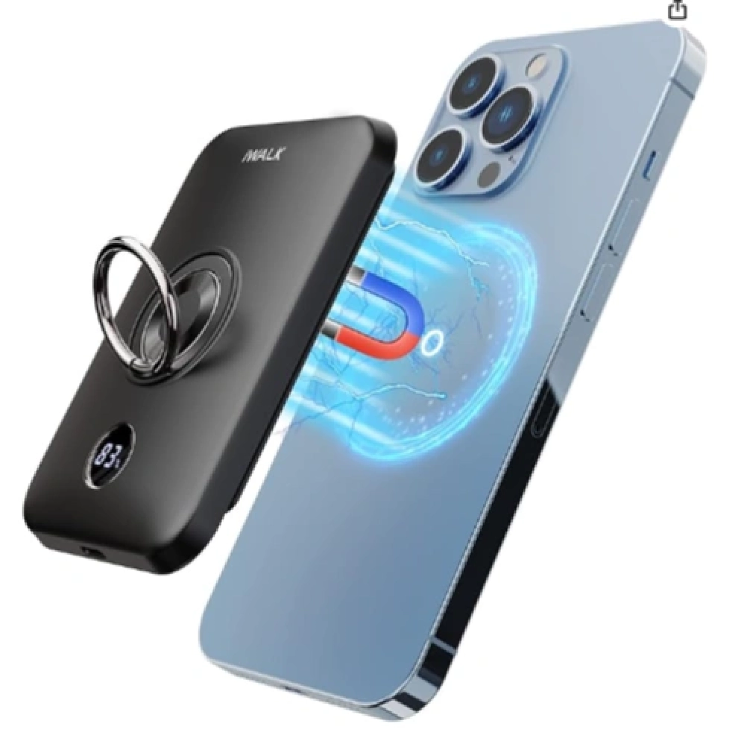 بنك الطاقة اللاسلكي المغناطيسي iWALK، شاحن محمول بسعة 6000 مللي أمبير في الساعة مع حامل للأصابع باللون الأبيض
