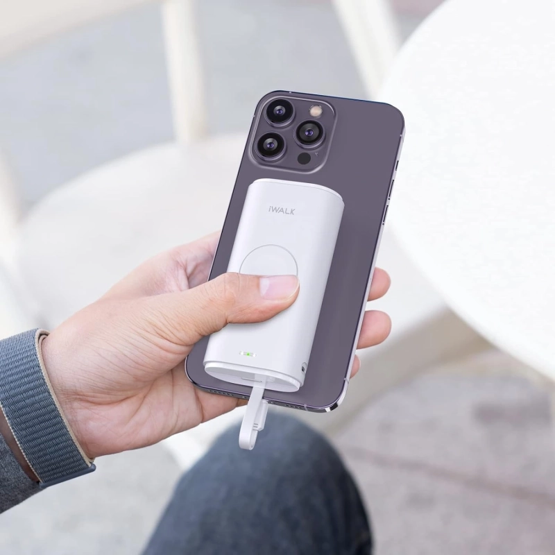 شاحن محمول من آي ووك باور بانك صغير الحجم بقدرة 9000 مللي أمبير في الساعة مع كابل لايتنينج مدمج وساعةآبل مغناطيسية