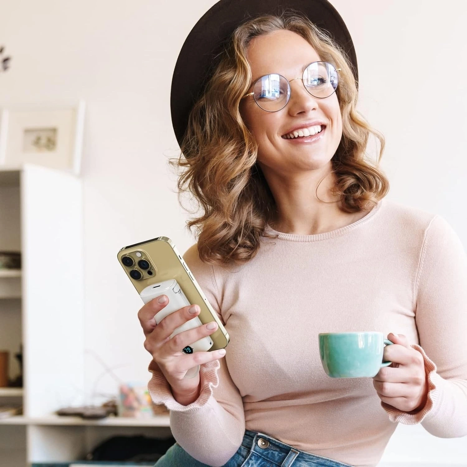شاحن محمول آي ووك باور سكويد مع 3 كابلات مدمجة، بنك طاقة USB C بقدرة 9000 مللي أمبير في الساعة، شحن سريع 18 وات PD مع شاشة LED بيضاء