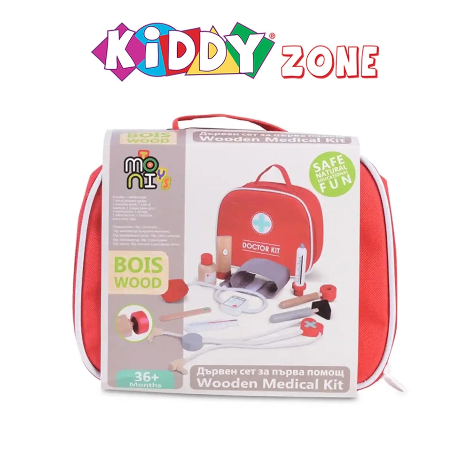 مجموعة أدوات طبية خشبية للعب التمثيلي، تتيح للأطفال تقمص دور الطبيب، وتشجع على اللعب الإبداعي وتنمية التعاطف والمهارات الحركية الدقيقة. مناسبة للأطفال من عمر 3 سنوات فما فوق.