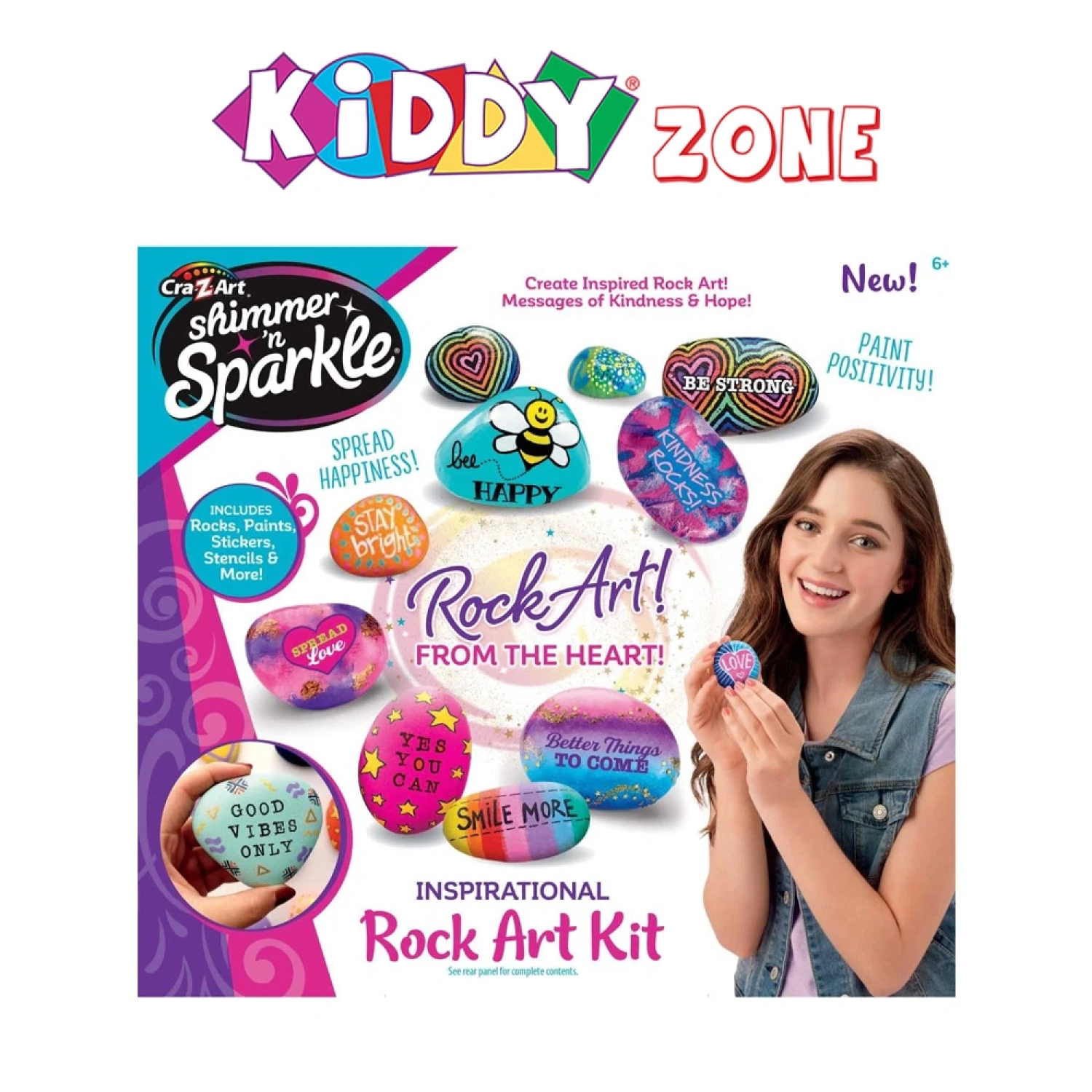 أطلق العنان لإبداعك مع مجموعة شيمر آند سباركل فن تزيين الصخور الإلهامي! قم بتزيين الصخور ورسمها برسائل ملهمة وألوان زاهية. مثالية لتعزيز التعبير عن الذات ونشر الإيجابية، وتحتوي المجموعة على كل ما تحتاجه لقضاء ساعات من المرح الفني.