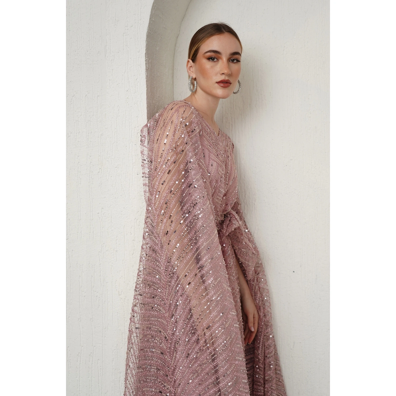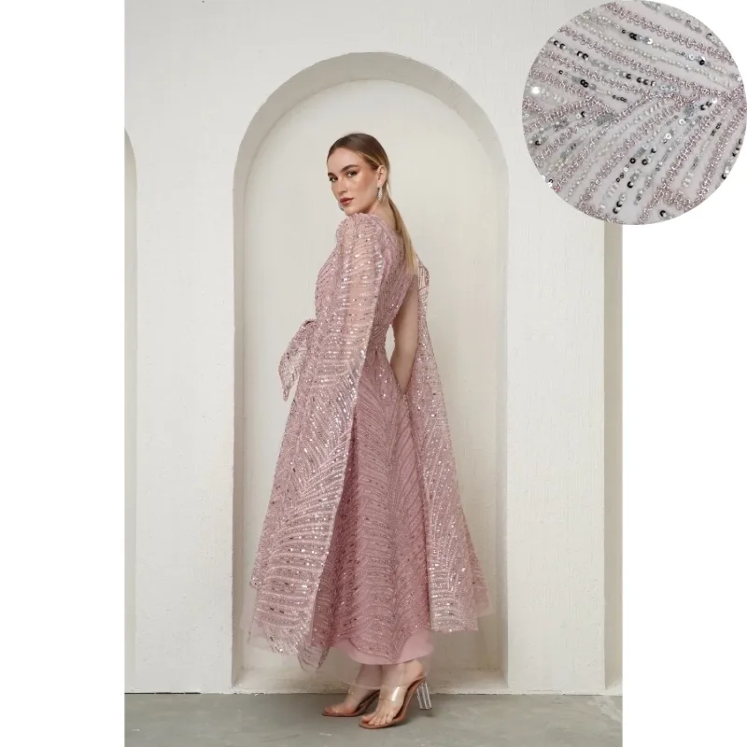 فستان - وردي الفاتح باكمام رداء من البلويستر100%