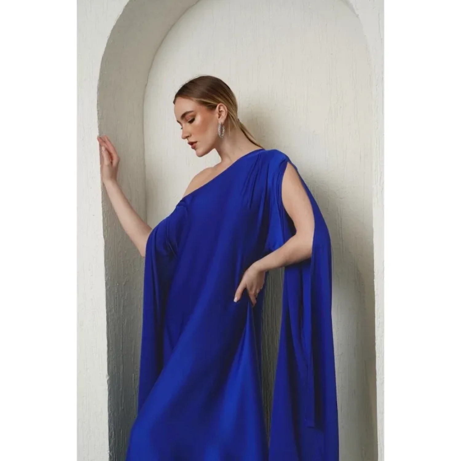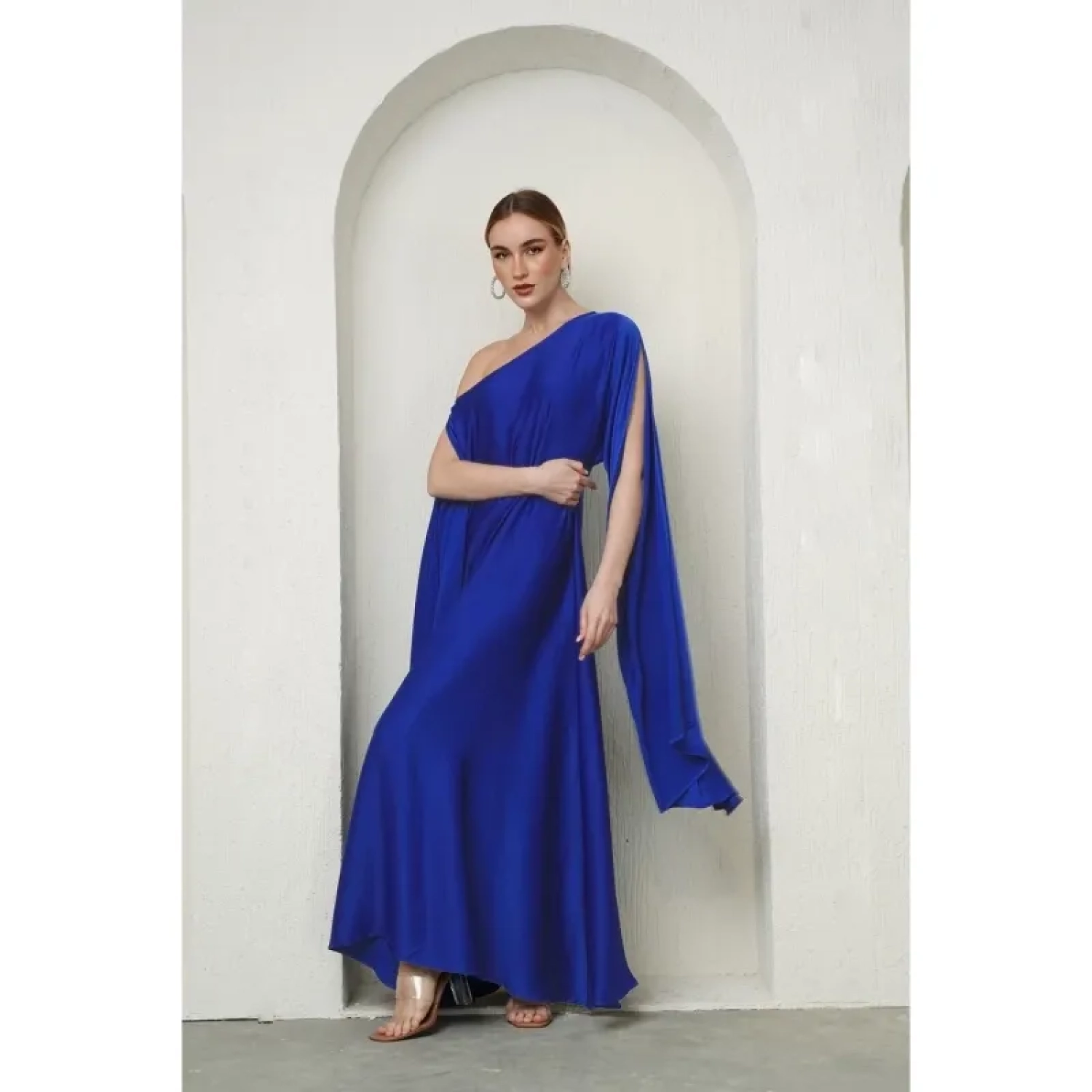 فستان بكتف واحد- أزرق