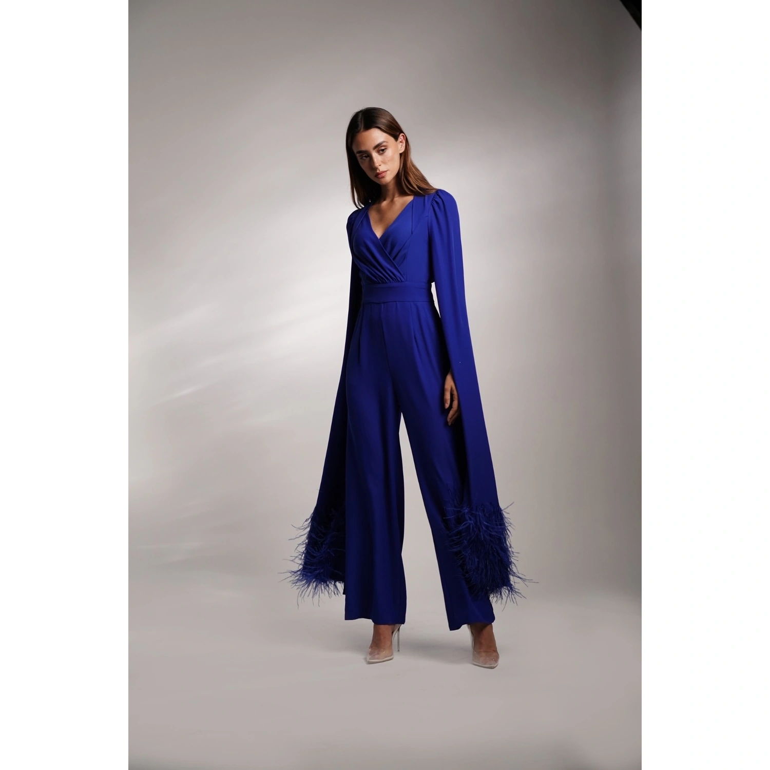 جمبسوت - أزرق مع ريش من 97% البلويستر و 3% الياف صناعية