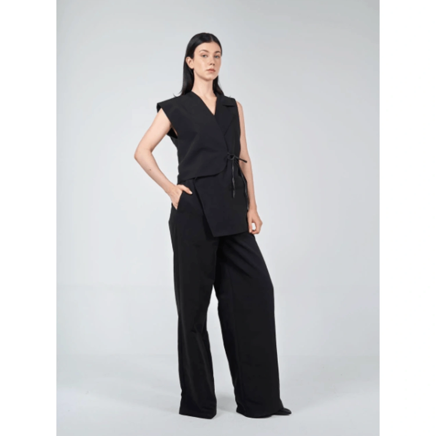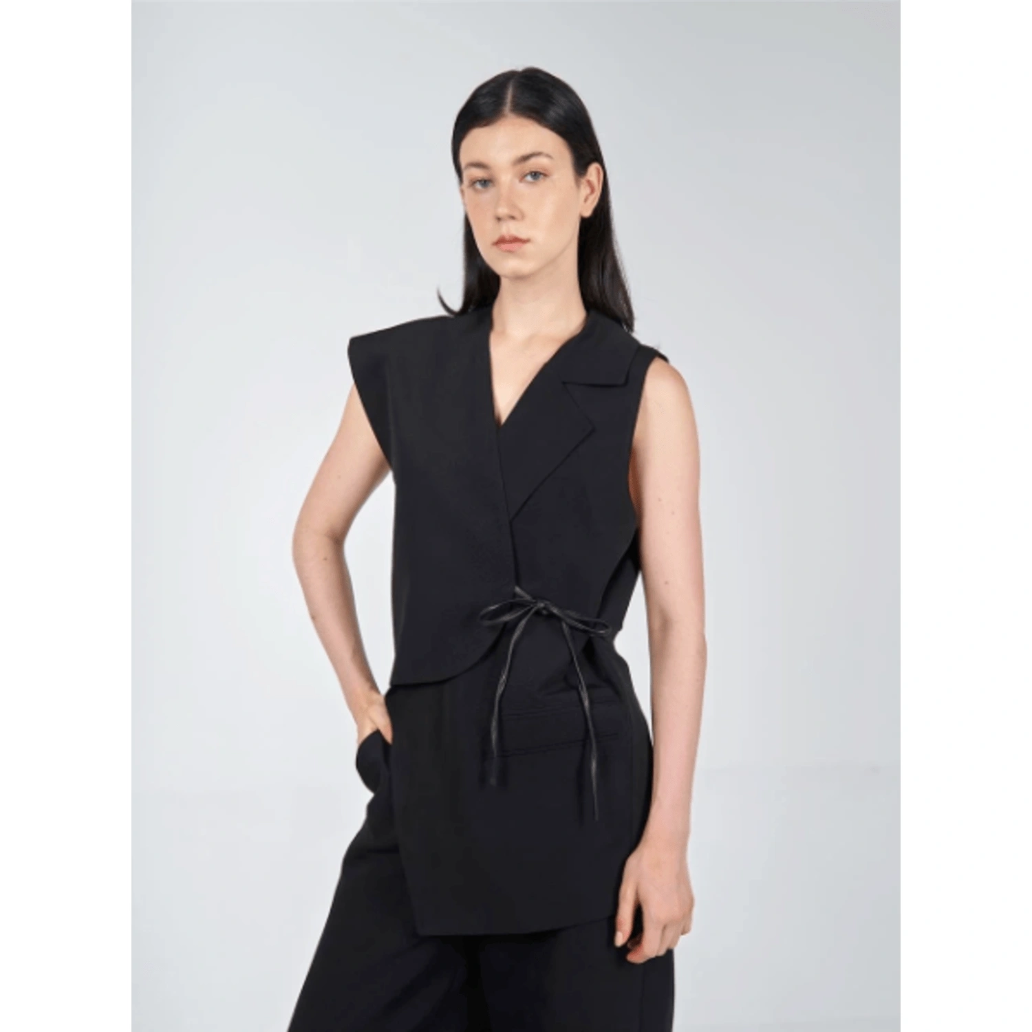 سترة بدون أكمام ذات حواف بتطريز ناعم