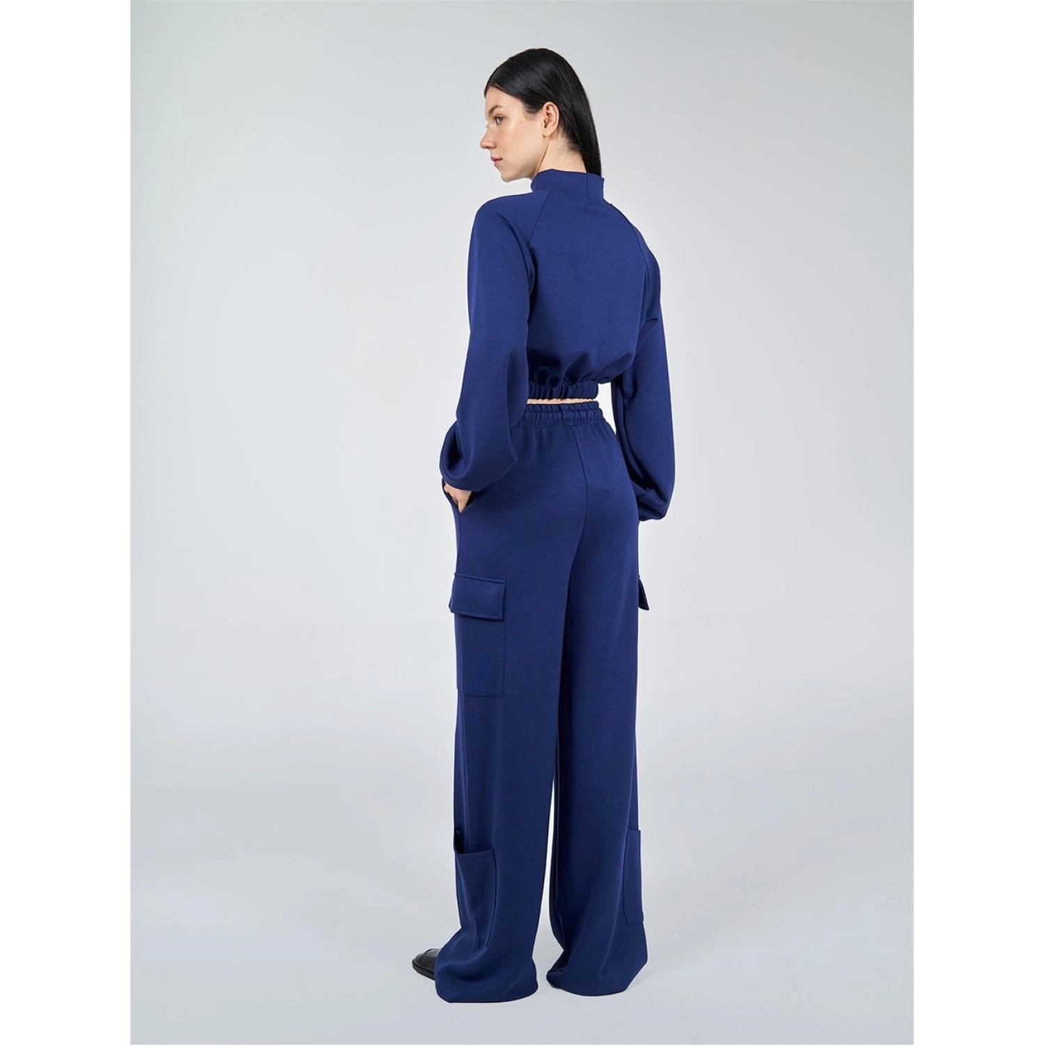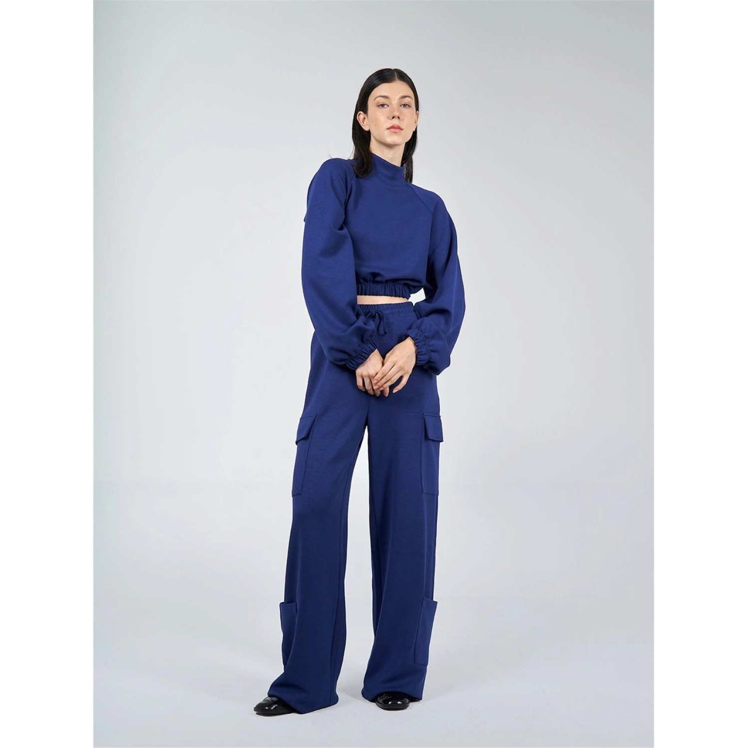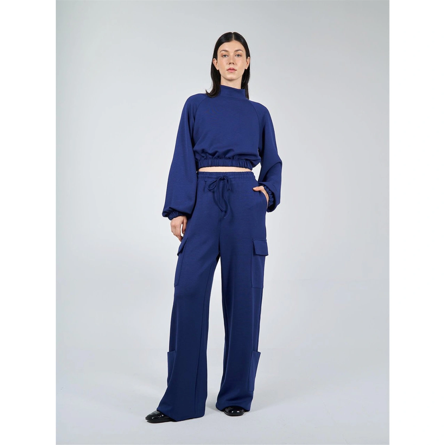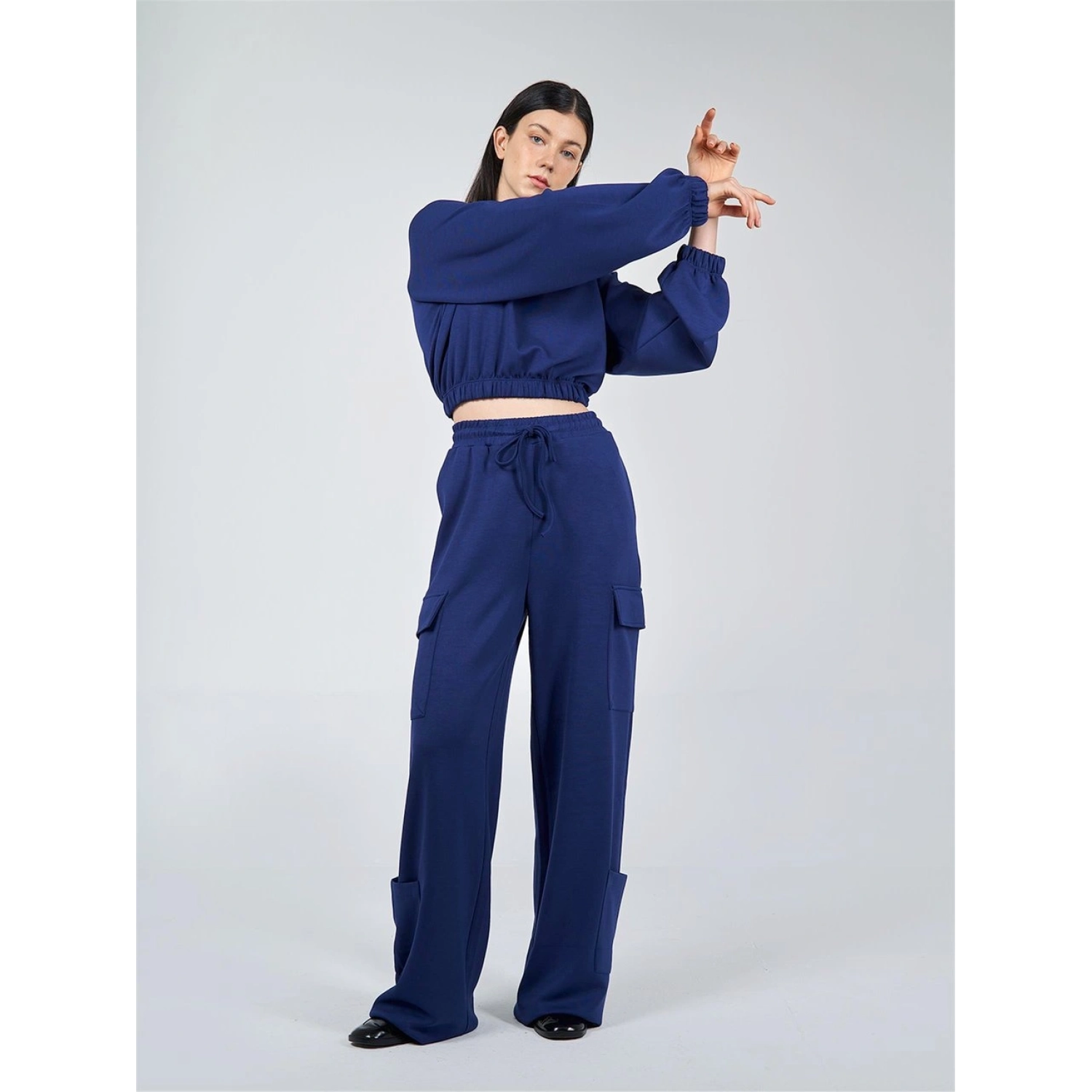 بنطلون كارجو أزرق بقصة واسعة