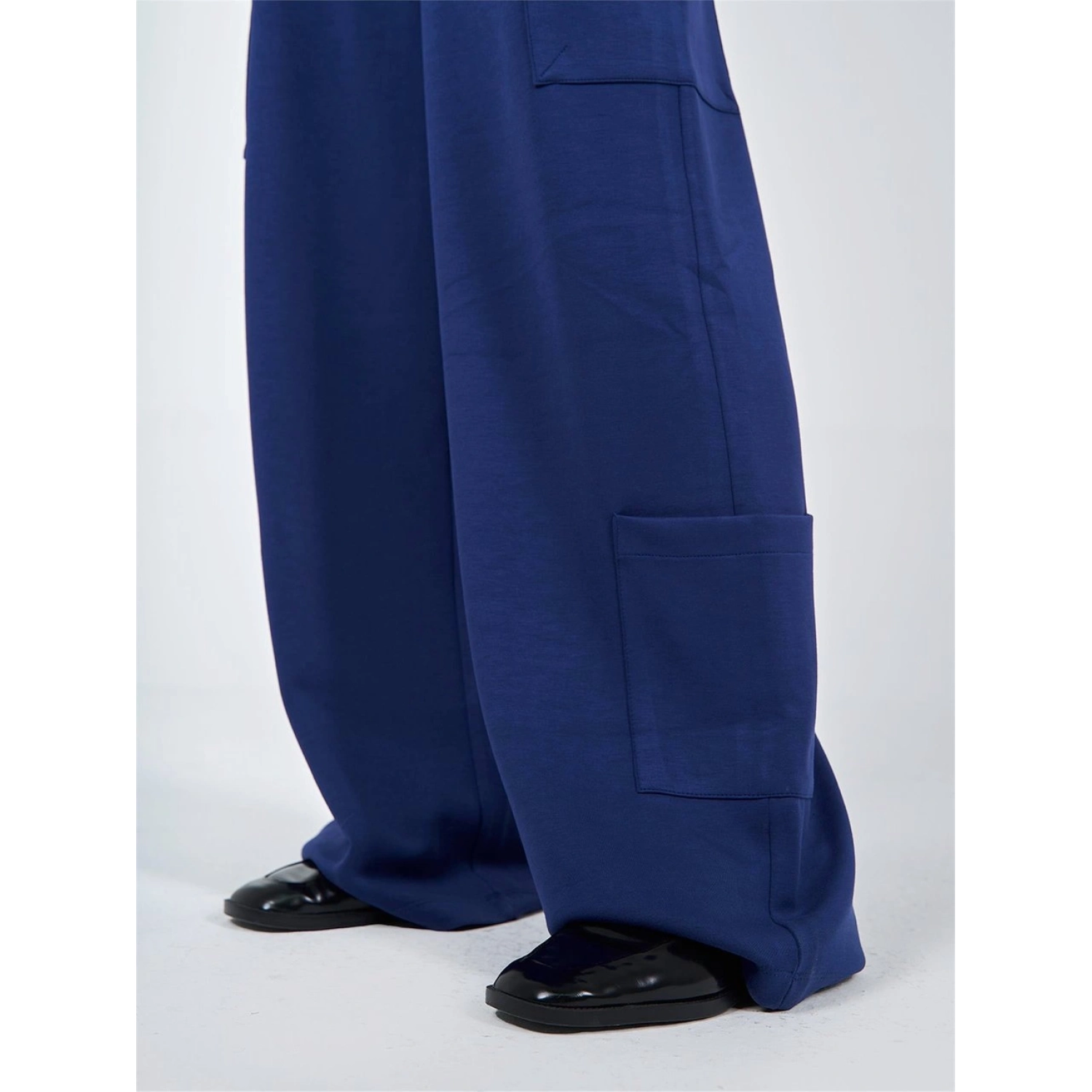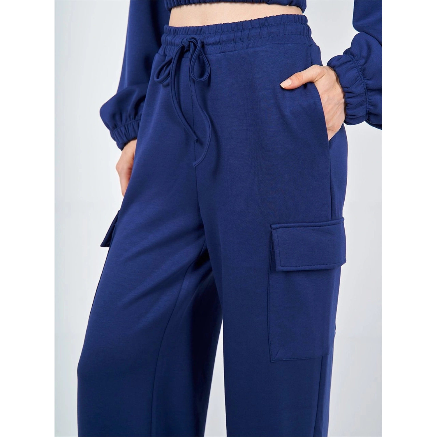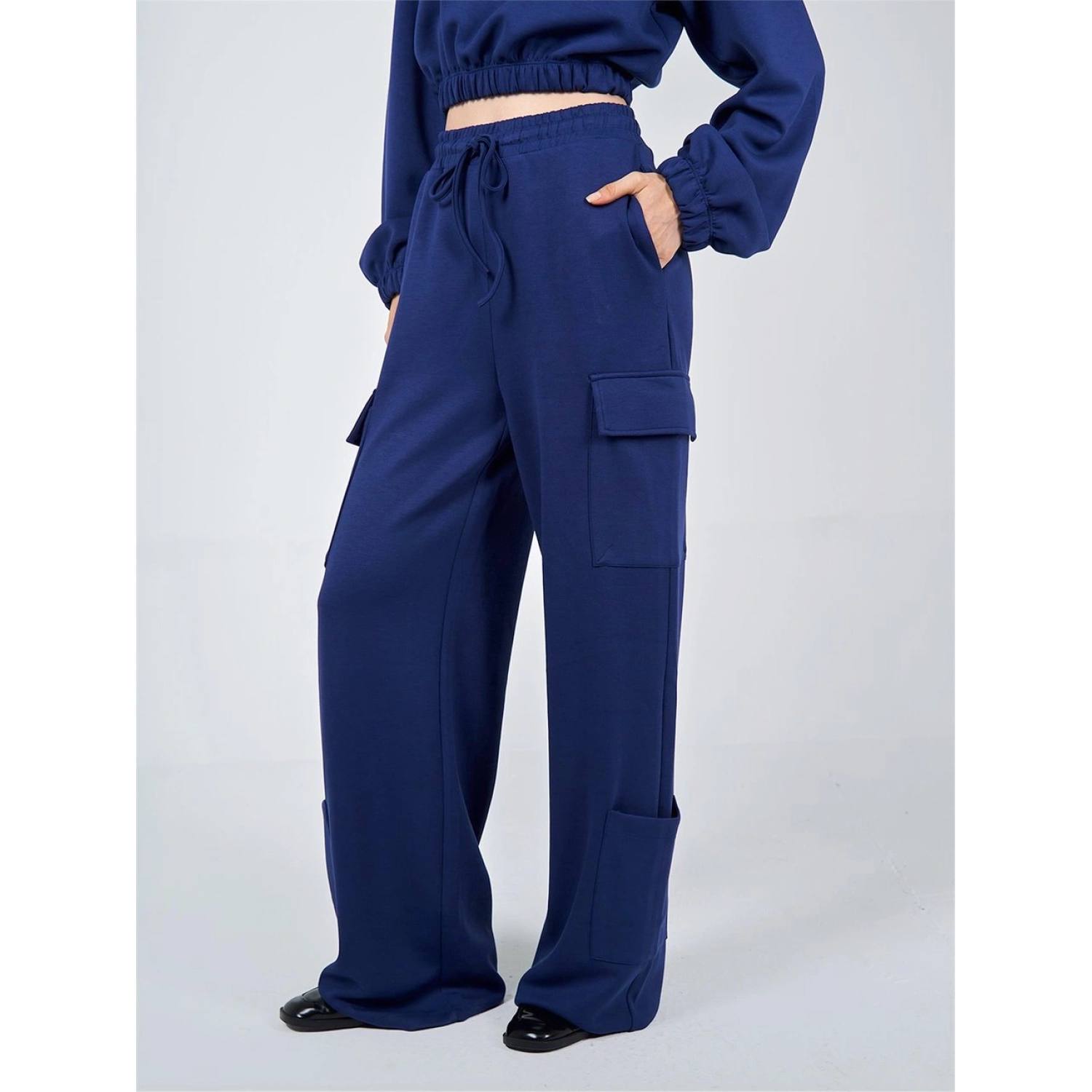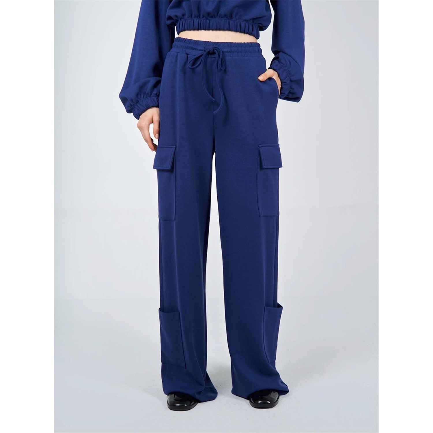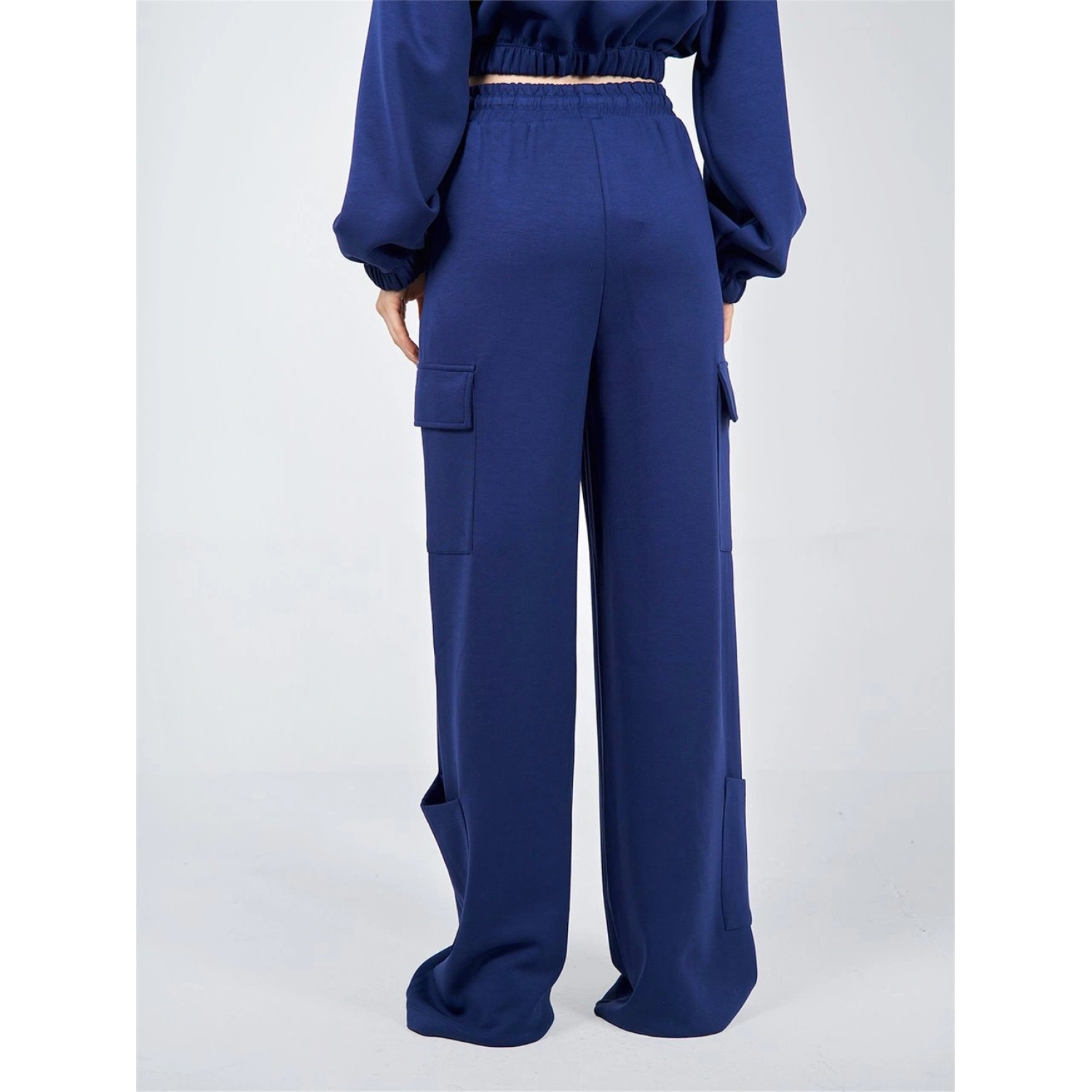 بنطلون كارجو أزرق بقصة واسعة من بوليستر - 55%، رايون - 40%، إيلاستان - 5%