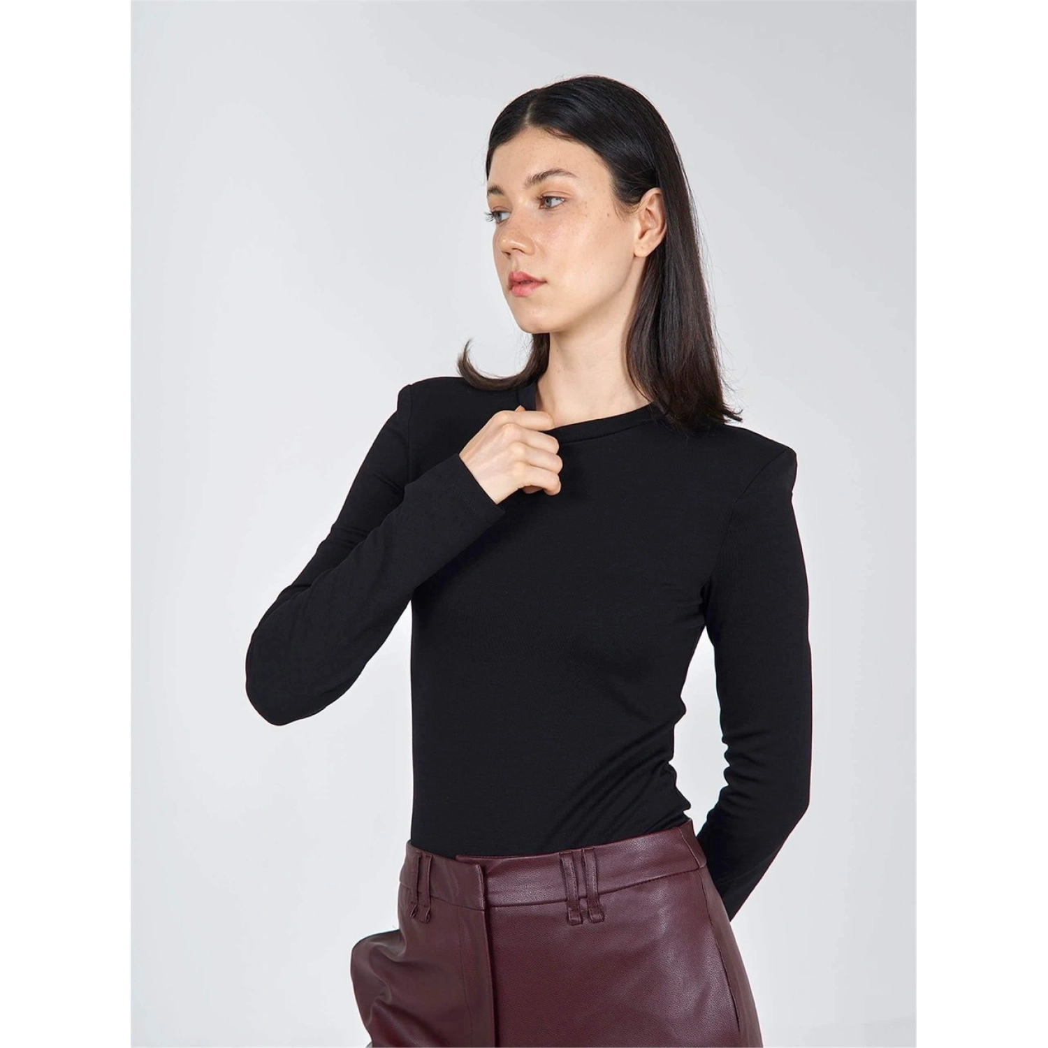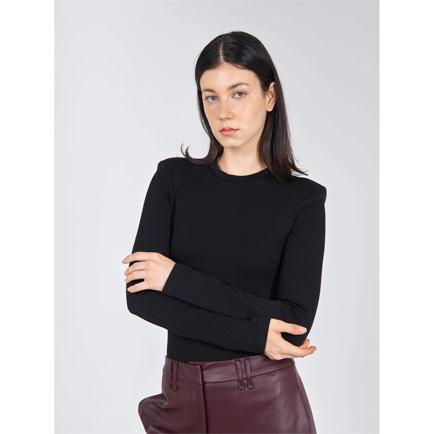 بودي بأكمام طويلة مع حشوة على الأكتاف من بوليستر - 47% وفيسكوز - 34% وإيلاستان - 5%