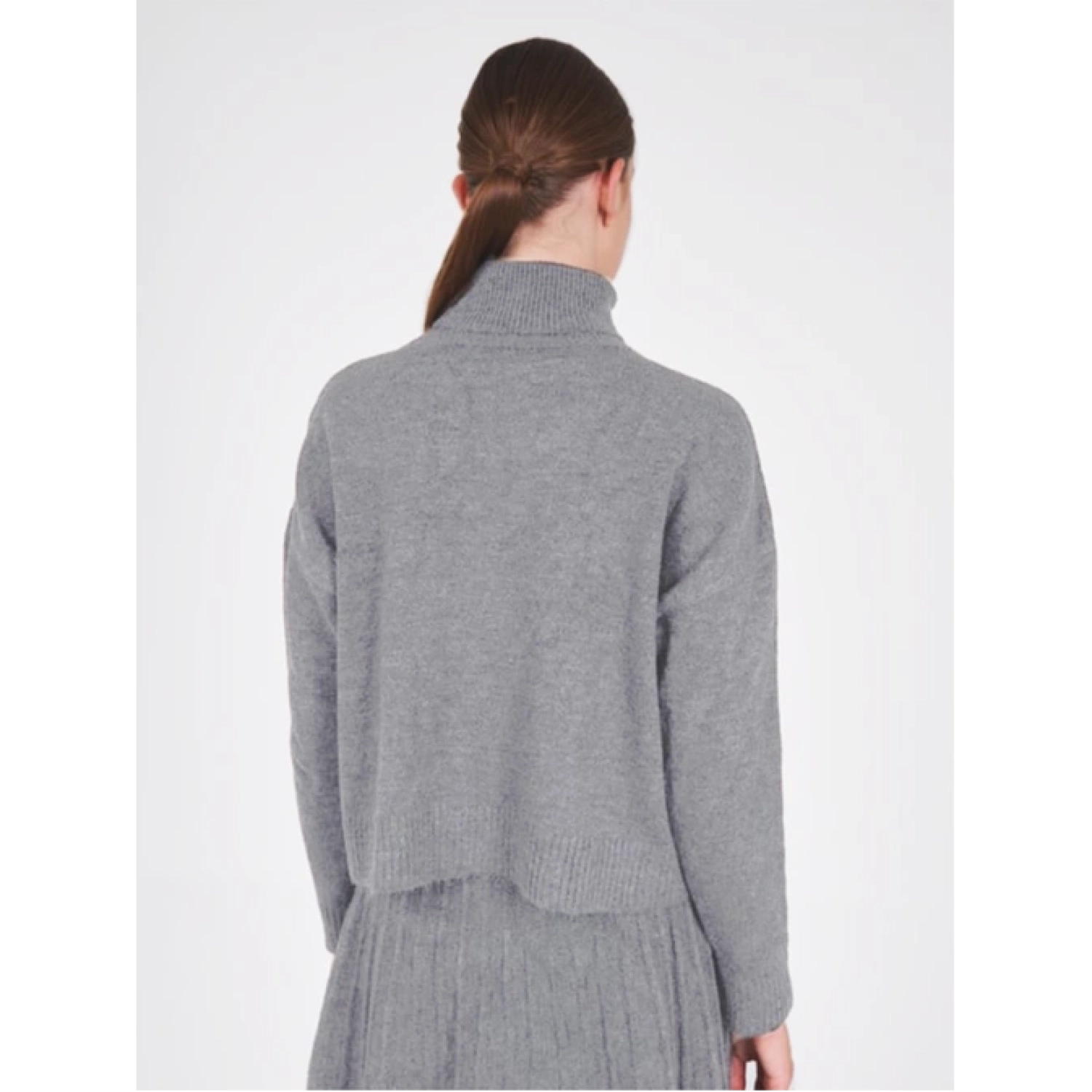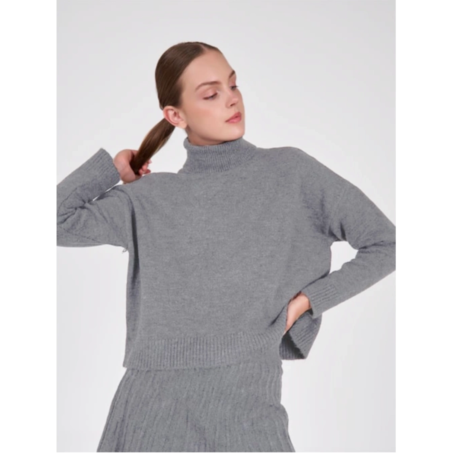 سويت شيرت ذات أكمام طويلة وياقة عالية مع تنورة مُطويّة من "أكريليك 80%، بوليستر 13%، إيليت 7%"