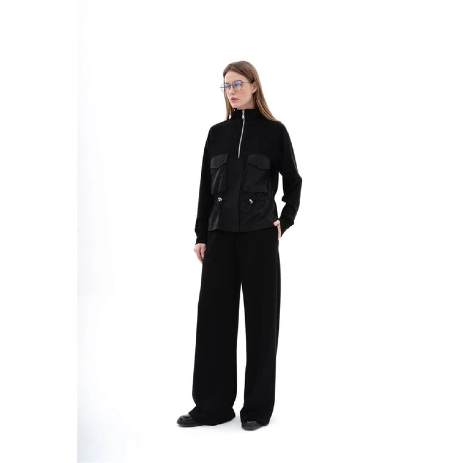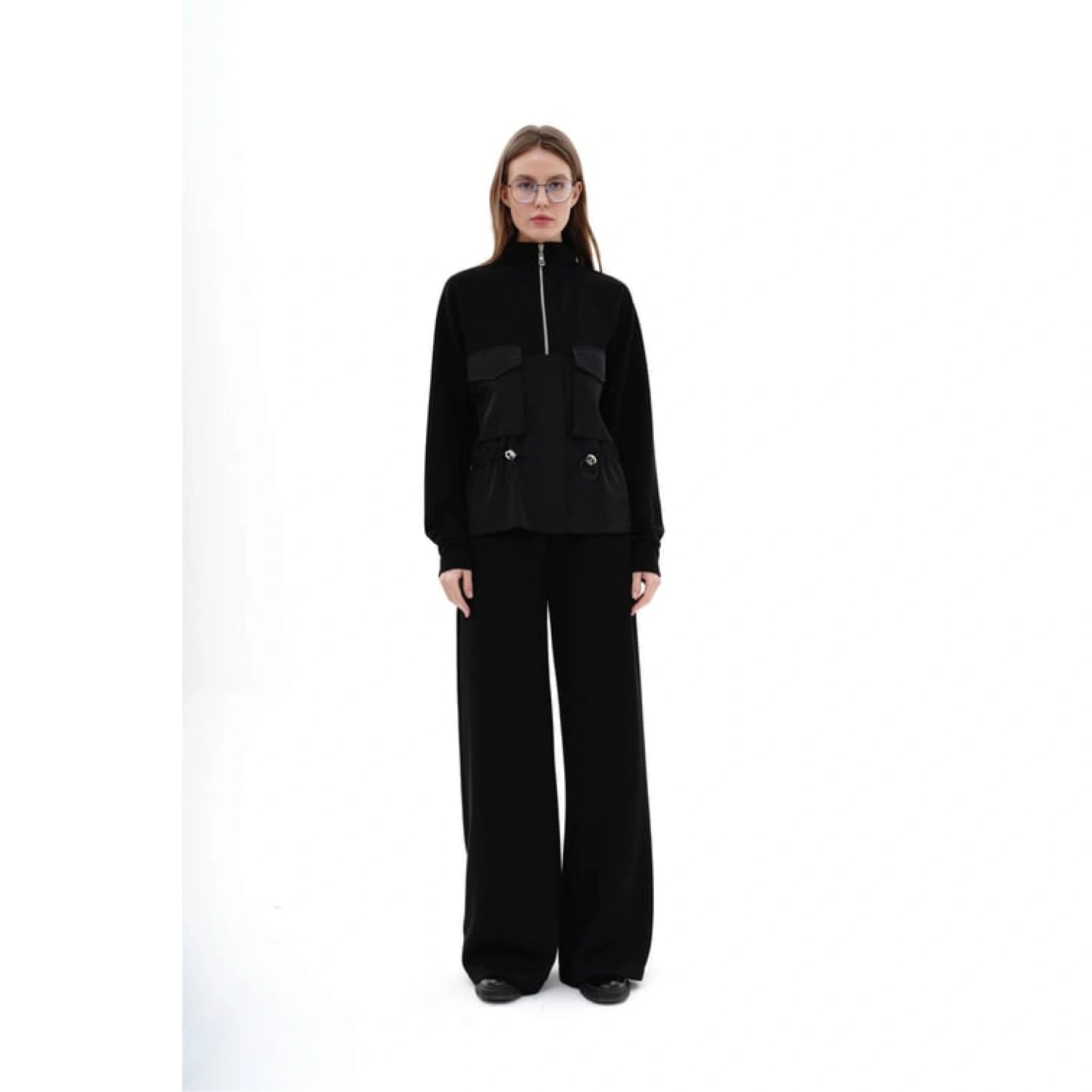 سويت شيرت بأكمام طويلة وسحاب مع جيوب بقماش مع ناعم من "بوليستر - 95%، إيلاستان - 5%"