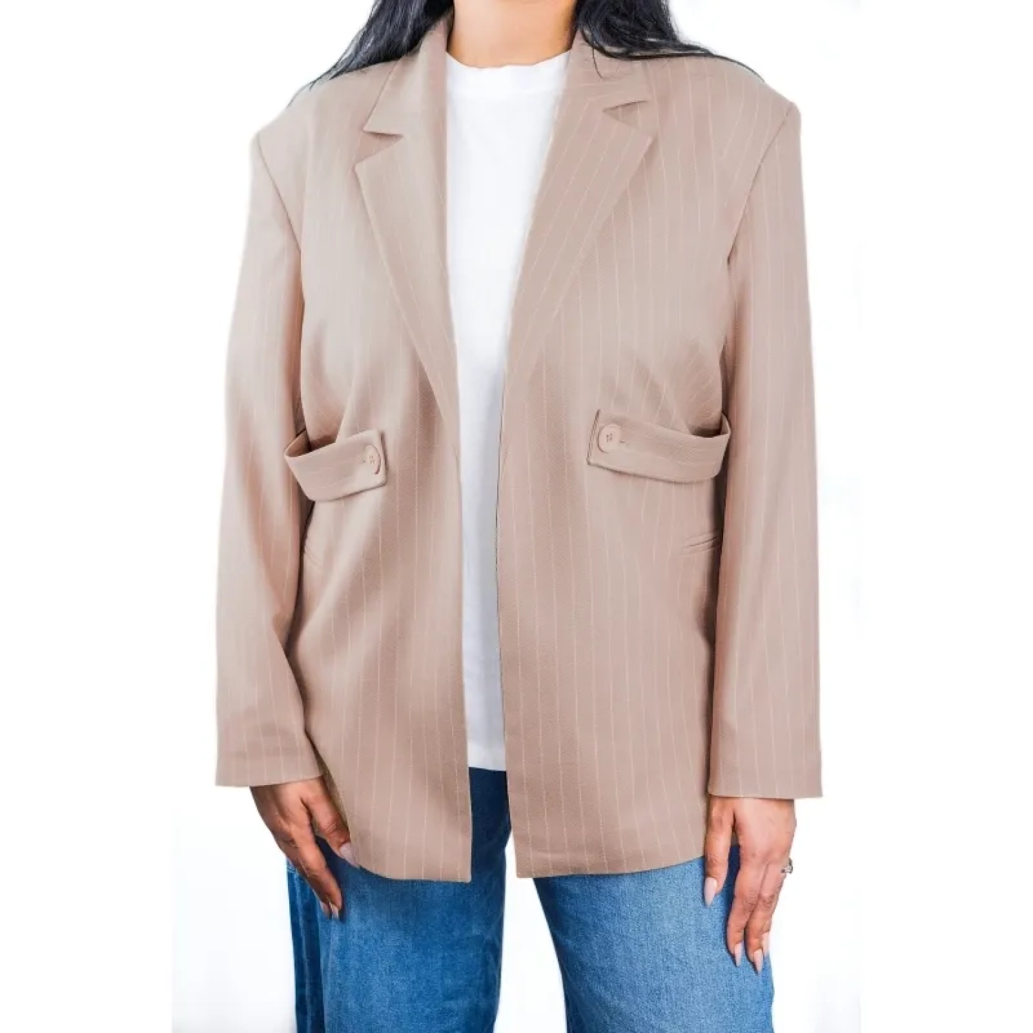 بليزر مخطط مع حزام لتحديد الخصرمن بوليستر - 64%، فيسكوز - 31%، إيلاستان - 5%