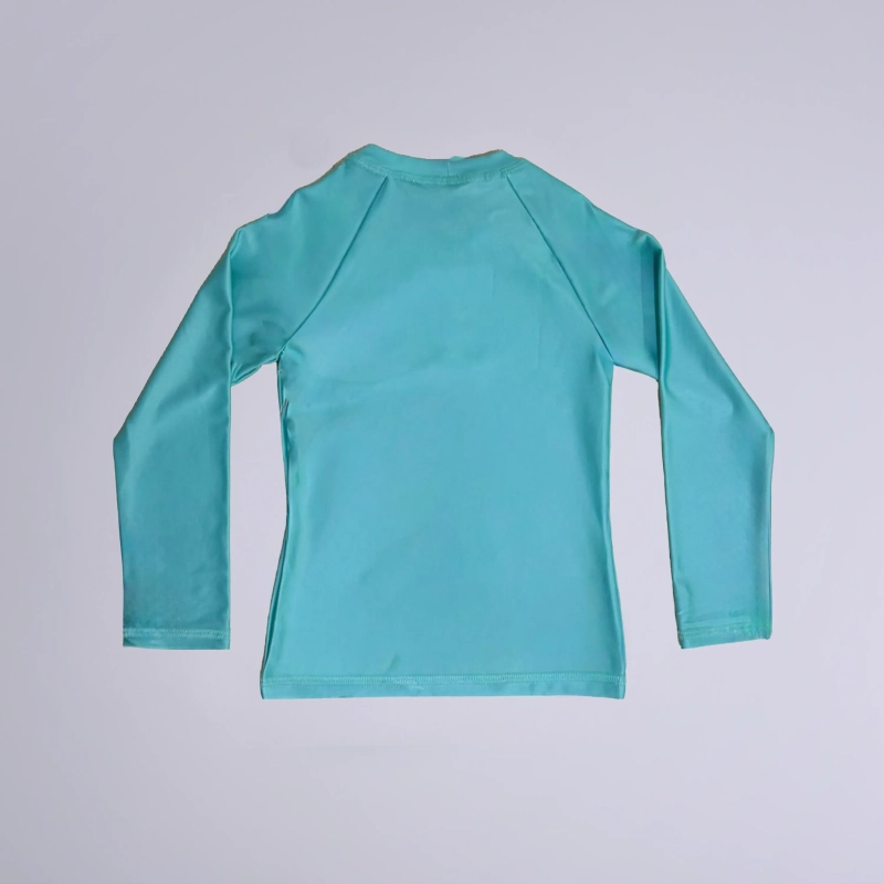 لمغامرات مشمسة،تم تصميم هذا التيشيرت للبنات بمعامل حماية +UV50 وهو مصنوع من قماش شبكي ناعم بأكمام راجلان طويلة وياقة دائرية. يتميز بخفة الوزن والراحة، مما يجعله مثالياً لأيام الشاطئ أو المسبح مع حماية إضافية من الشمس وتصميم أمامي مرح