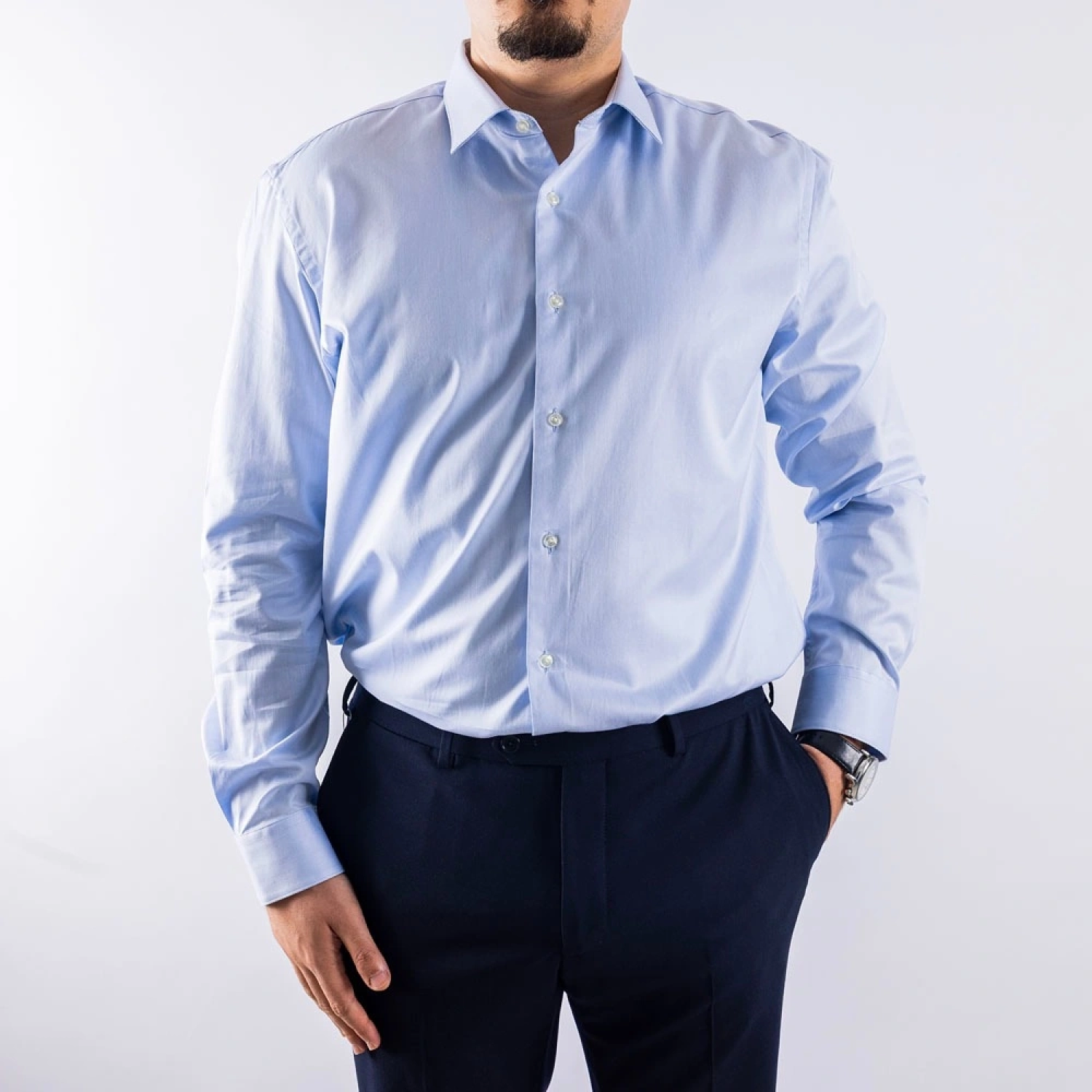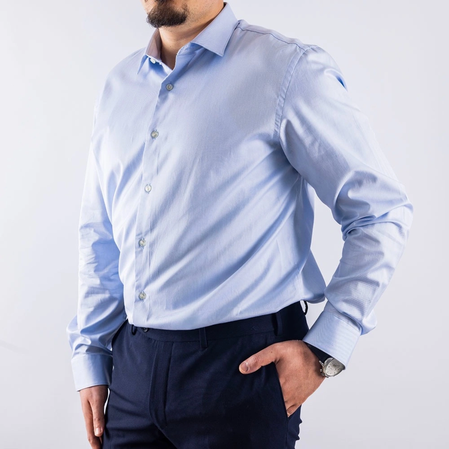 قميص رجالي كلاسيكي بقصّة ضيقة، قطعة أساسية لا تتأثر بمرور الزمن ومصنوع من القطن بنسبة 100%. صُمم هذا القميص بعناية فائقة للحصول على مظهر أنيق، ويجمع بشكل سلس بين الأسلوب الكلاسيكي والراحة العصرية.