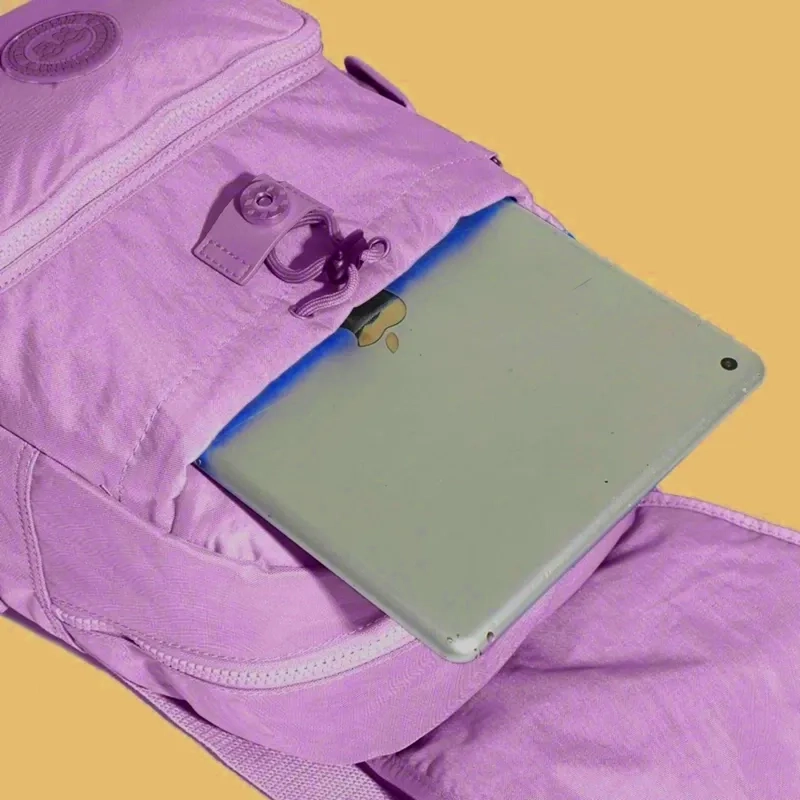 مينينو آند مينينا علامة تجارية برازيلية تشتهر بجودتها العالية وتصميمها العصري. حقيبة ظهر كاندي بوب بلون أرجواني ناعم، بتصميم رقيق وخفيف، مثالية للأيام الدراسية أو النزهات غير الرسمية، تتميز بجيب أمامي وأحزمة مريحة وسلسلة مفاتيح أنيقة. الأبعاد: 40×29×16 سم.