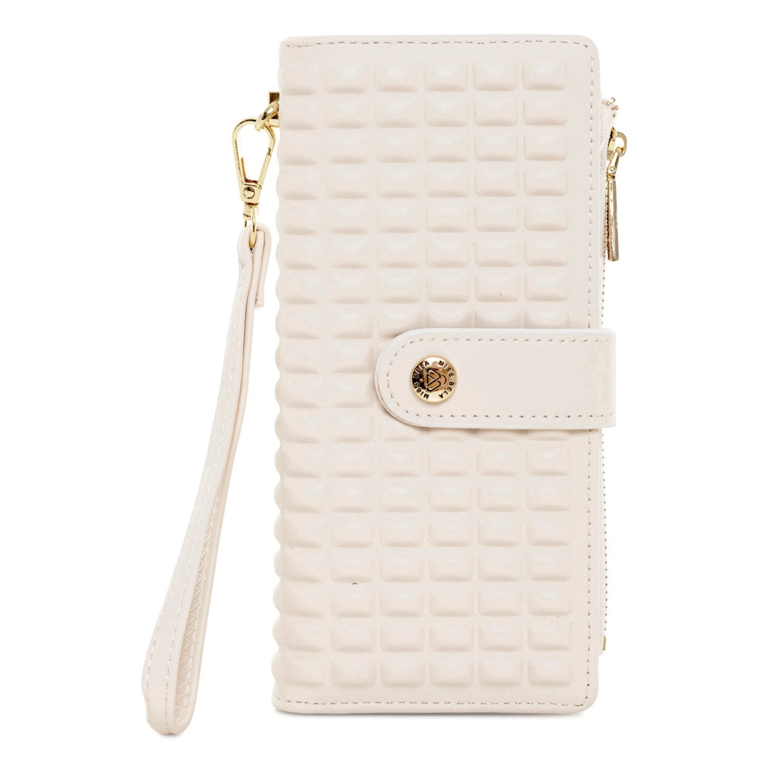 تتميز محفظة لوناري بهيكلها المصنوع من البولي يوريثان المصبوب، مما يمنحها تصميمًا عصريًا وهيكلًا متينًا بملمس ناعم وطبقة نهائية مقاومة للماء. يُضفي النسيج المبطن الجريء واللمسات الذهبية لمسةً أنيقة وعملية، بينما تُضفي الحقيبة القابلة للفصل على المعصم سهولةً يومية. يبلغ حجمها 19 × 9 سم، وتتوفر بألوان الأبيض العاجي، والبني الأرزي، والأخضر الغابي.