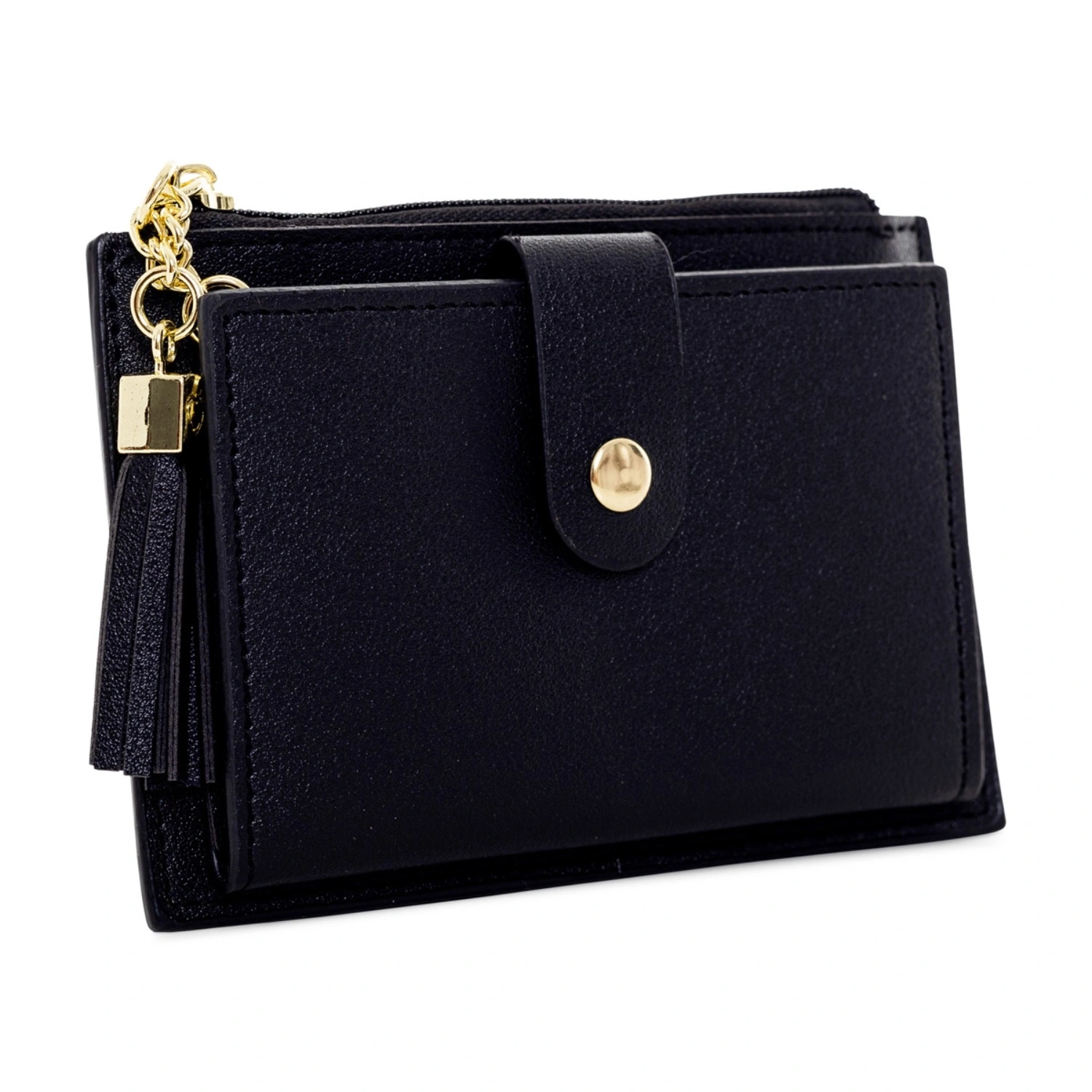 محفظة مافيرا قطعة أساسية عصرية، مصنوعة من البولي يوريثان الناعم الملمس، بتصميم بسيط مزين بحليات شرابات قابلة للفصل وتفاصيل قلب ذهبية اللون. تجمع المحفظة بين الأناقة والعملية بتصميمها المدمج، بفضل فتحاتها المتعددة للبطاقات، وجيبها العلوي بسحاب، وجيبها الأمامي المزود بكبسون. يبلغ مقاسها 13 × 9.5 سم، وهي متوفرة بألوان الأبيض العاجي، والبني الفاتح، والأسود الداكن.