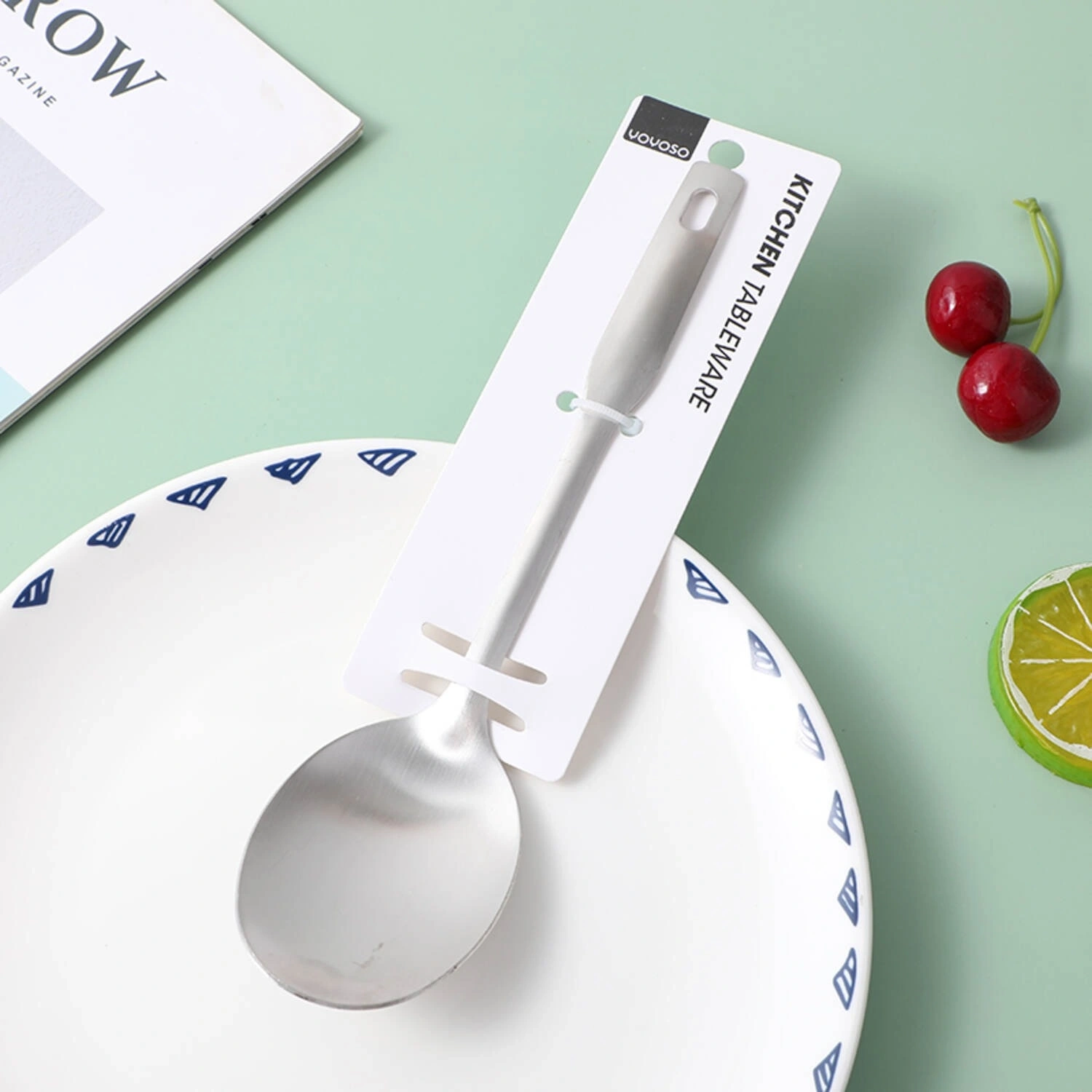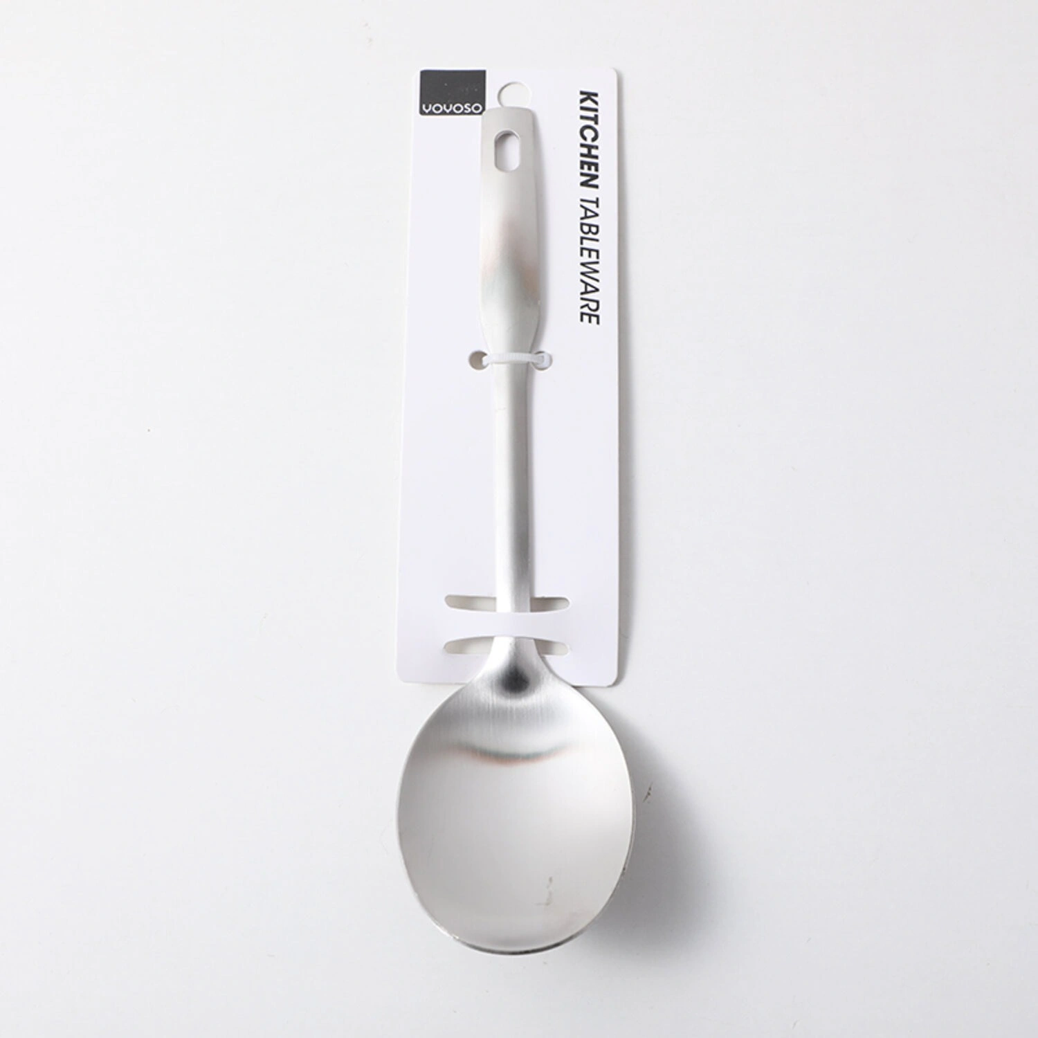 ملعقة تقديم دائرية متينة مصنوعة من الستانلس ستيل، مثالية لتقديم الأرز، المعكرونة، السلطات أو الأطباق الرئيسية. تتميز بلمسة ناعمة ومقبض قوي لراحة الاستخدام، كما أنها مقاومة للصدأ وسهلة التنظيف لضمان الاستخدام طويل الأمد.