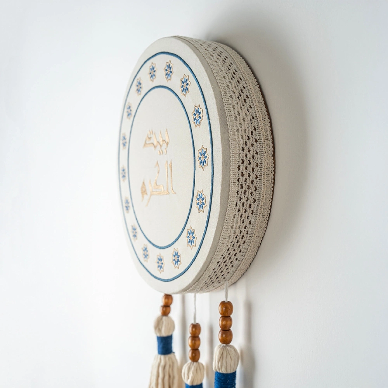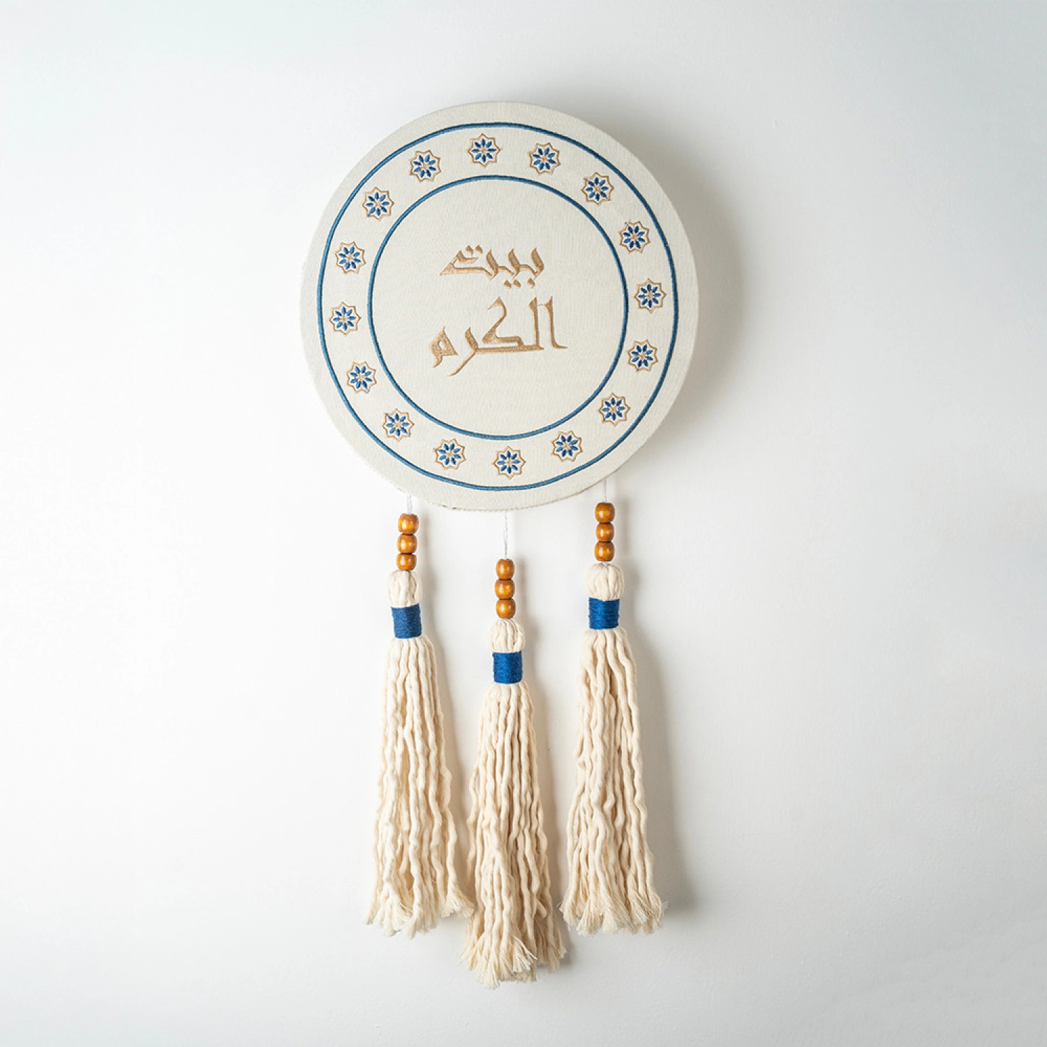 أضف لمسة عربية أصيلة إلى منزلك مع هذه التعليقة الجدارية المميزة، التي تحمل عبارة “بيت الكرم”، تعبيرًا عن الضيافة والسخاء. بتصميم أنيق مزخرف بنقوش شرقية دقيقة، ومزينة بشرّابات قطنية وخرز خشبي، مما يمنحها طابعًا تقليديًا بلمسة عصرية. مثالية لتعليقها في المدخل، غرفة المعيشة، أو كهدية راقية تعكس روح الترحيب والكرم.