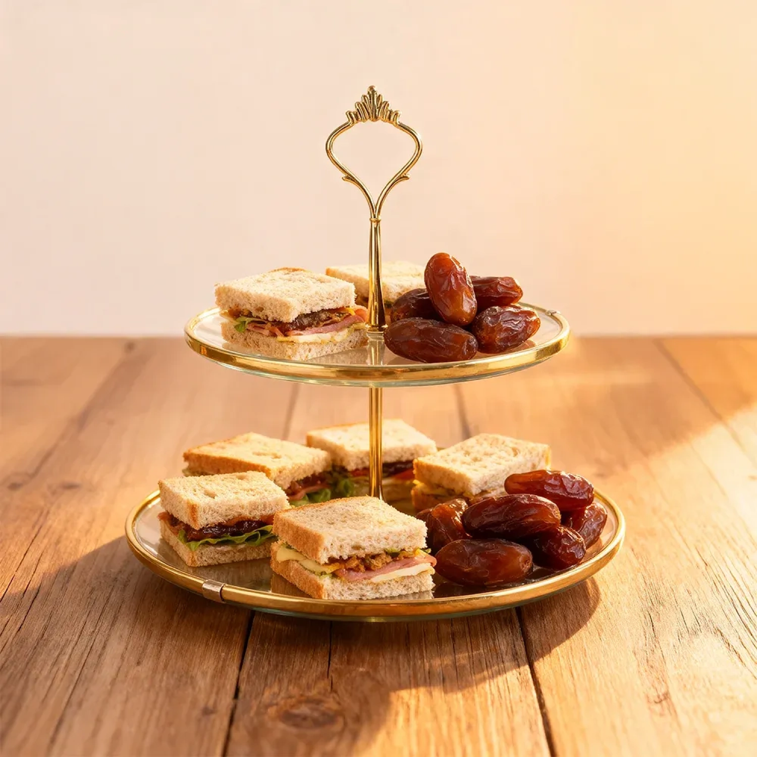 الاستخدام: تقديم الحلويات المتنوعة، التمور، أو الوجبات الخفيفة؛ عرض موفر للمساحة على الطاولة