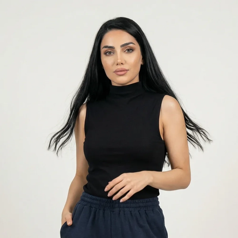 يُعد هذا التوب النسائي بدون أكمام بياقة عالية قطعة أساسية عصرية تجمع بين الراحة والمظهر الأنيق. يتميز بتصميم سادة مع ياقة عالية تمنح إطلالة مرتبة وعصرية، ويمكن ارتداؤه بمفرده أو تنسيقه تحت البلايزر، الجاكيتات، أو العبايات. يجعله تصميمه البسيط مناسبًا للإطلالات الكاجوال والسمارت كاجوال. متوفر بـ 5 ألوان ليكمل مختلف الإطلالات اليومية.