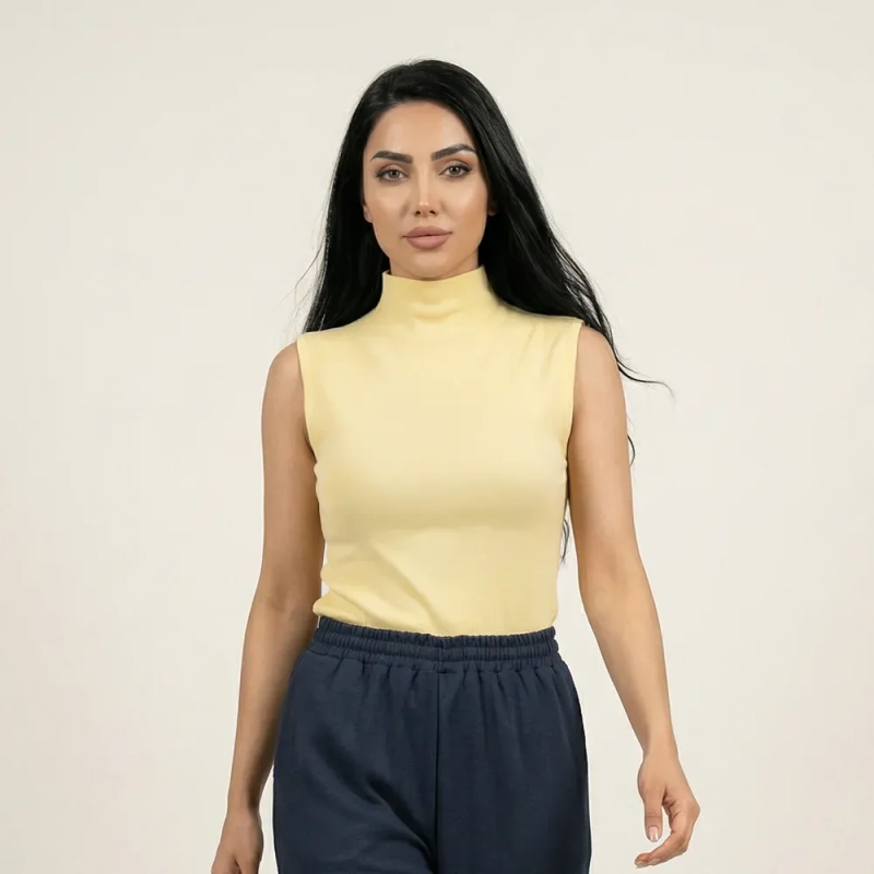 يُعد هذا التوب النسائي بدون أكمام بياقة عالية قطعة أساسية عصرية تجمع بين الراحة والمظهر الأنيق. يتميز بتصميم سادة مع ياقة عالية تمنح إطلالة مرتبة وعصرية، ويمكن ارتداؤه بمفرده أو تنسيقه تحت البلايزر، الجاكيتات، أو العبايات. يجعله تصميمه البسيط مناسبًا للإطلالات الكاجوال والسمارت كاجوال. متوفر بـ 5 ألوان ليكمل مختلف الإطلالات اليومية.