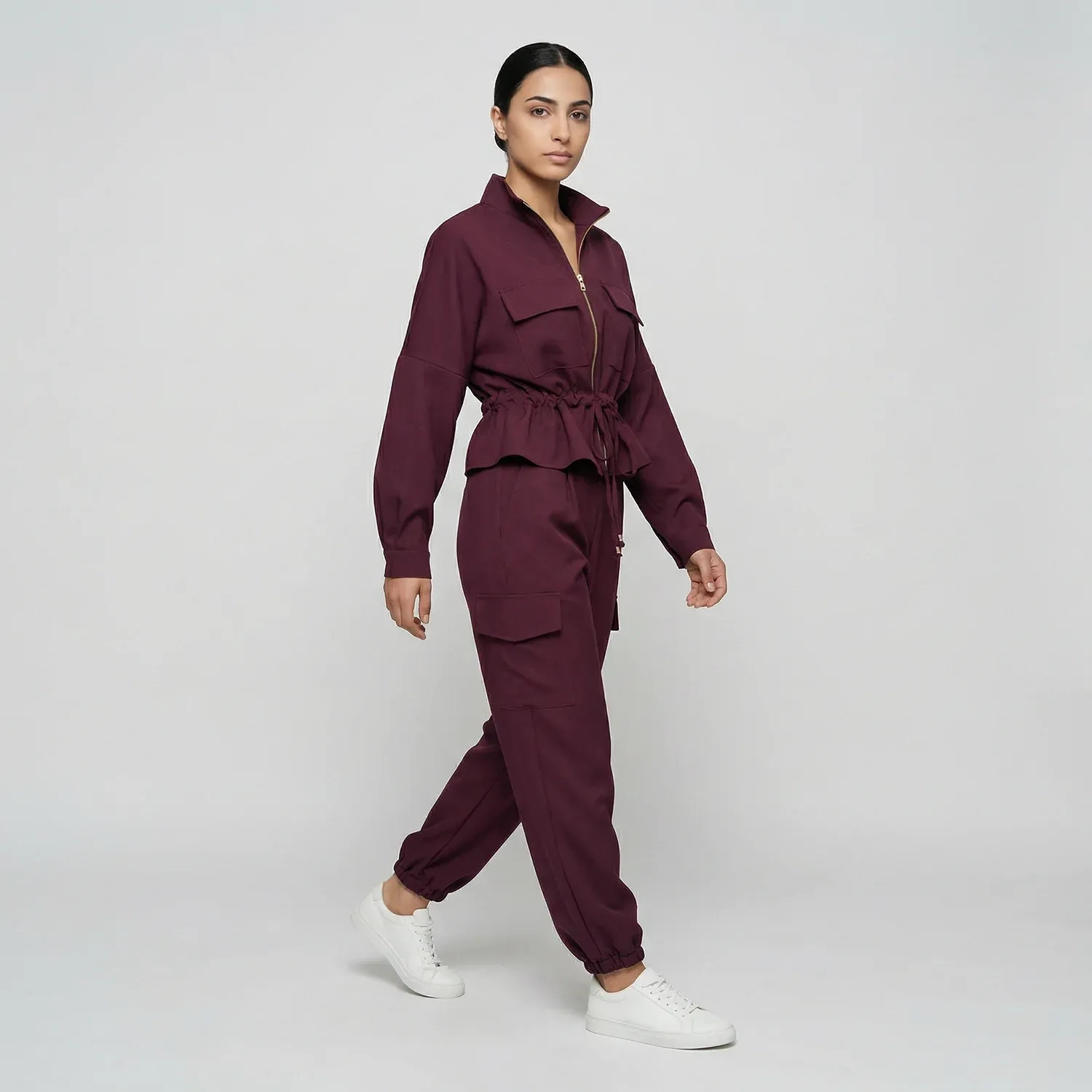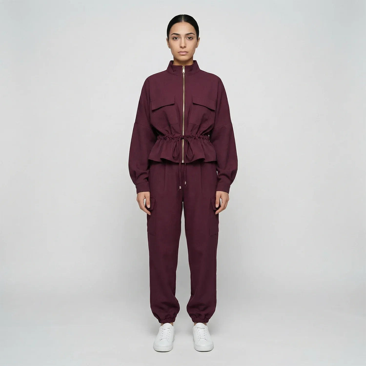 صُمم هذا الطقم النسائي المريح والعملي لارتداء يومي مريح مع الحفاظ على مظهر متناسق وأنيق. يتضمن الطقم جاكيت مزود بجيبين أماميين على الصدر مع بنطال "كارغو" مطابق، مما يوفر الراحة والعملية في آن واحد. تصميمه السادة والمتعدد الاستخدامات يجعله مثاليًا للاسترخاء، أو النزهات الكاجوال، أو التنسيقات اليومية الأنيقة والمريحة. متوفر بـ 4 ألوان أساسية، مما يجعله الخيار الأمثل للراحة العفوية والأسلوب العصري.