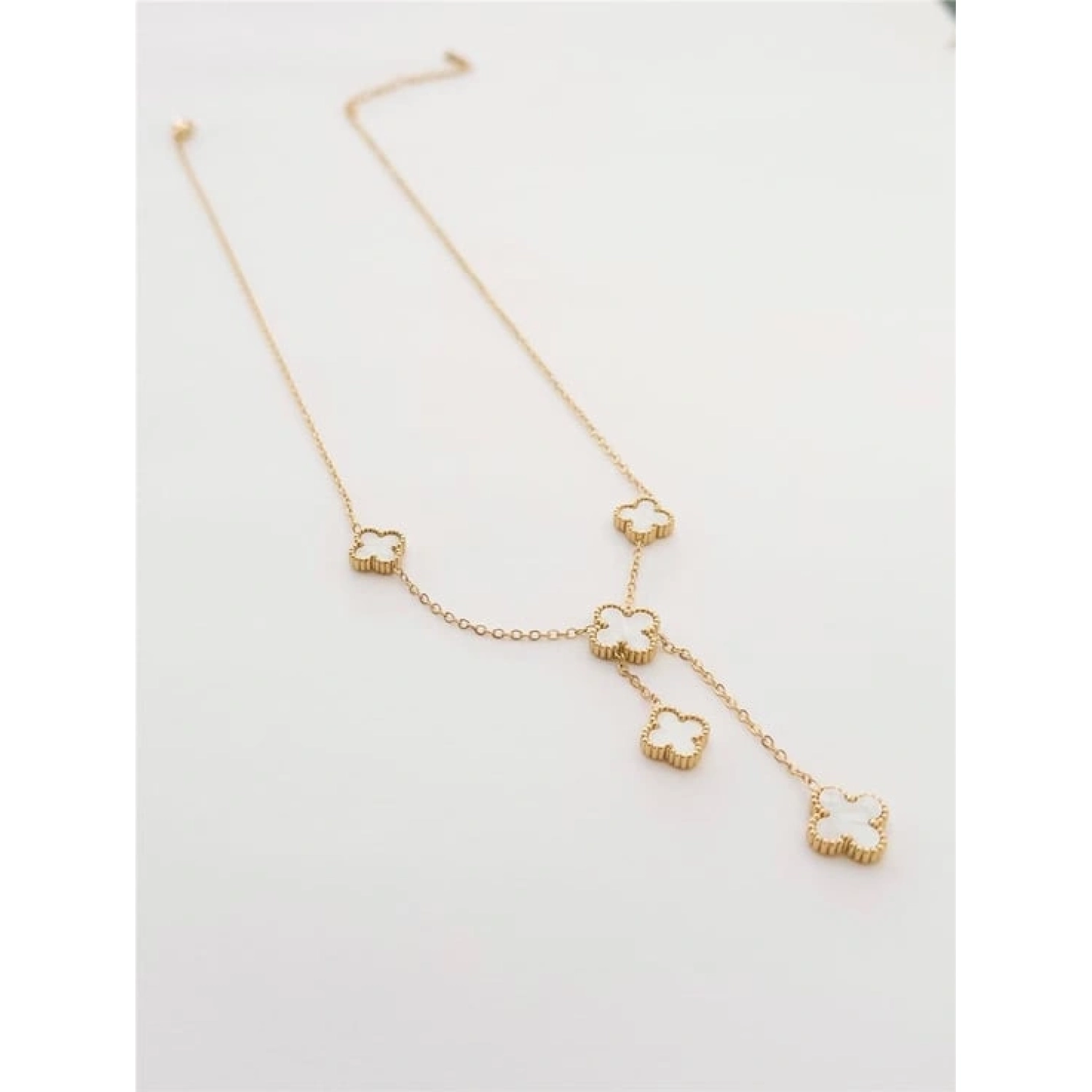 High-quality Stainless Steel Van cliff White Necklace 45cm -Gold color
