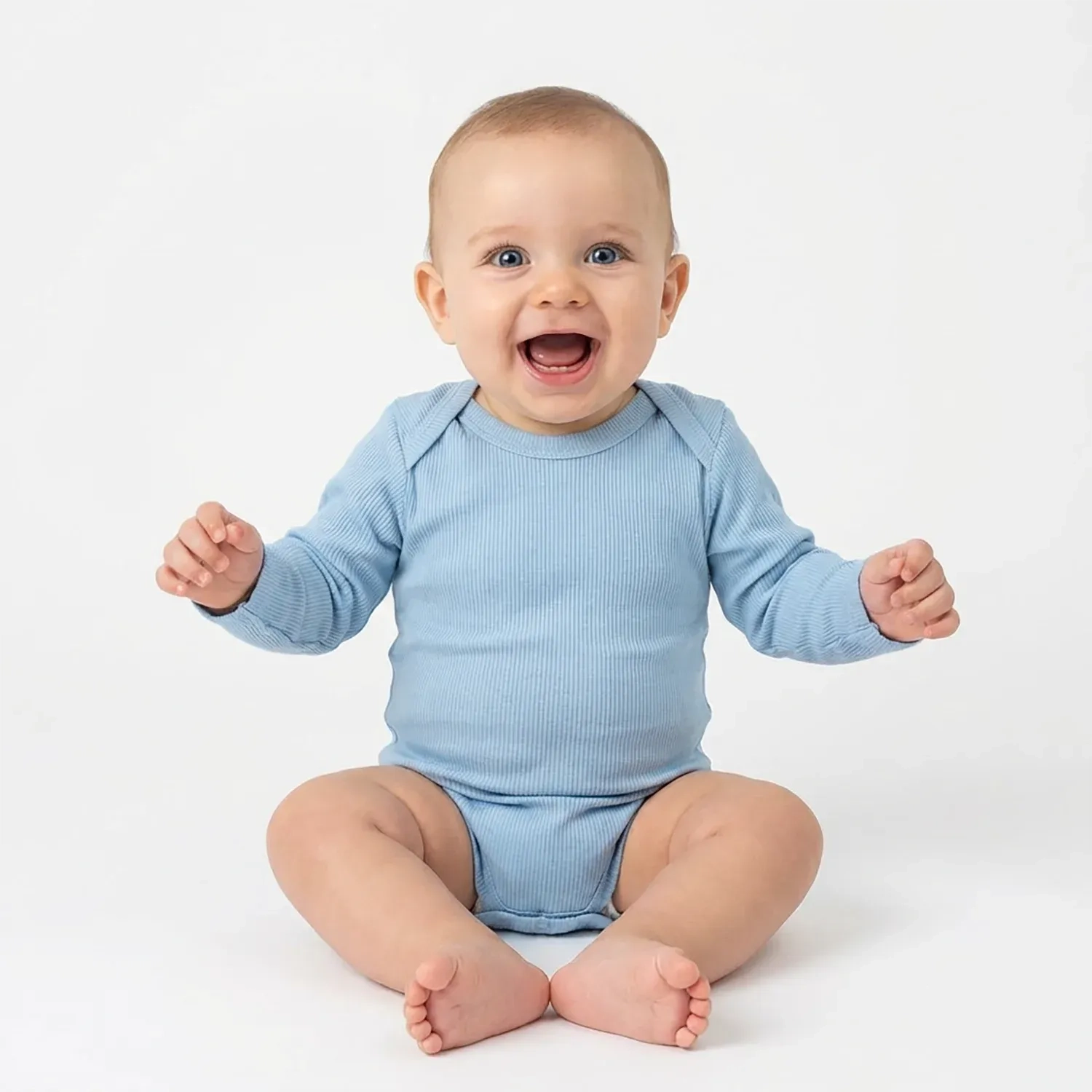 This soft and stretchy 2-piece Ribbed Bodysuit Set includes two essential long sleeve bodysuits, crafted from 100% cotton suedine with a gentle ribbed texture. Each one-piece offers a snug yet flexible fit, providing breathable comfort and all-day coziness for naps, playtime, and layering.