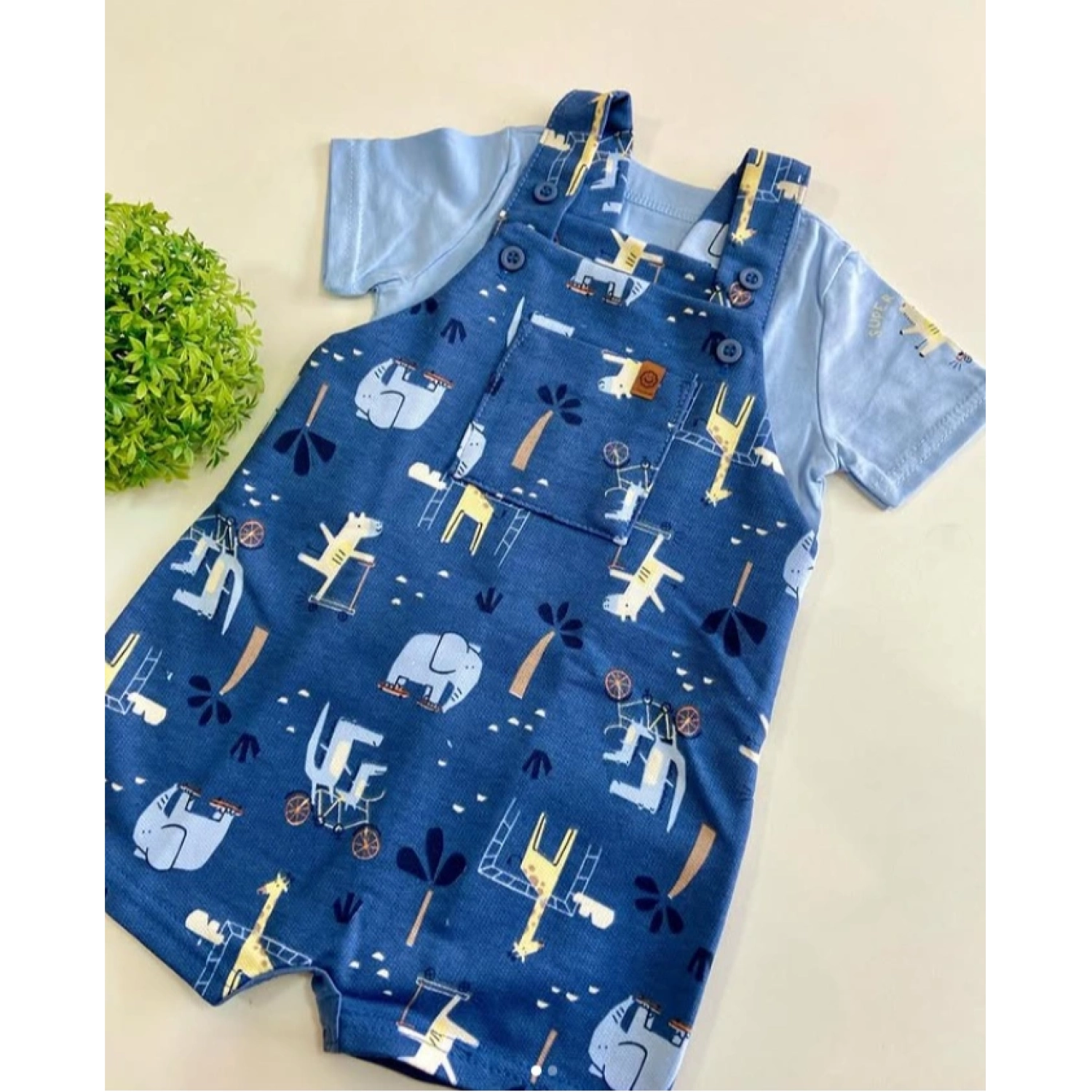 Baby Boy's Cotton T-Shirt & Printed Fleece Overall Set - Light Blue