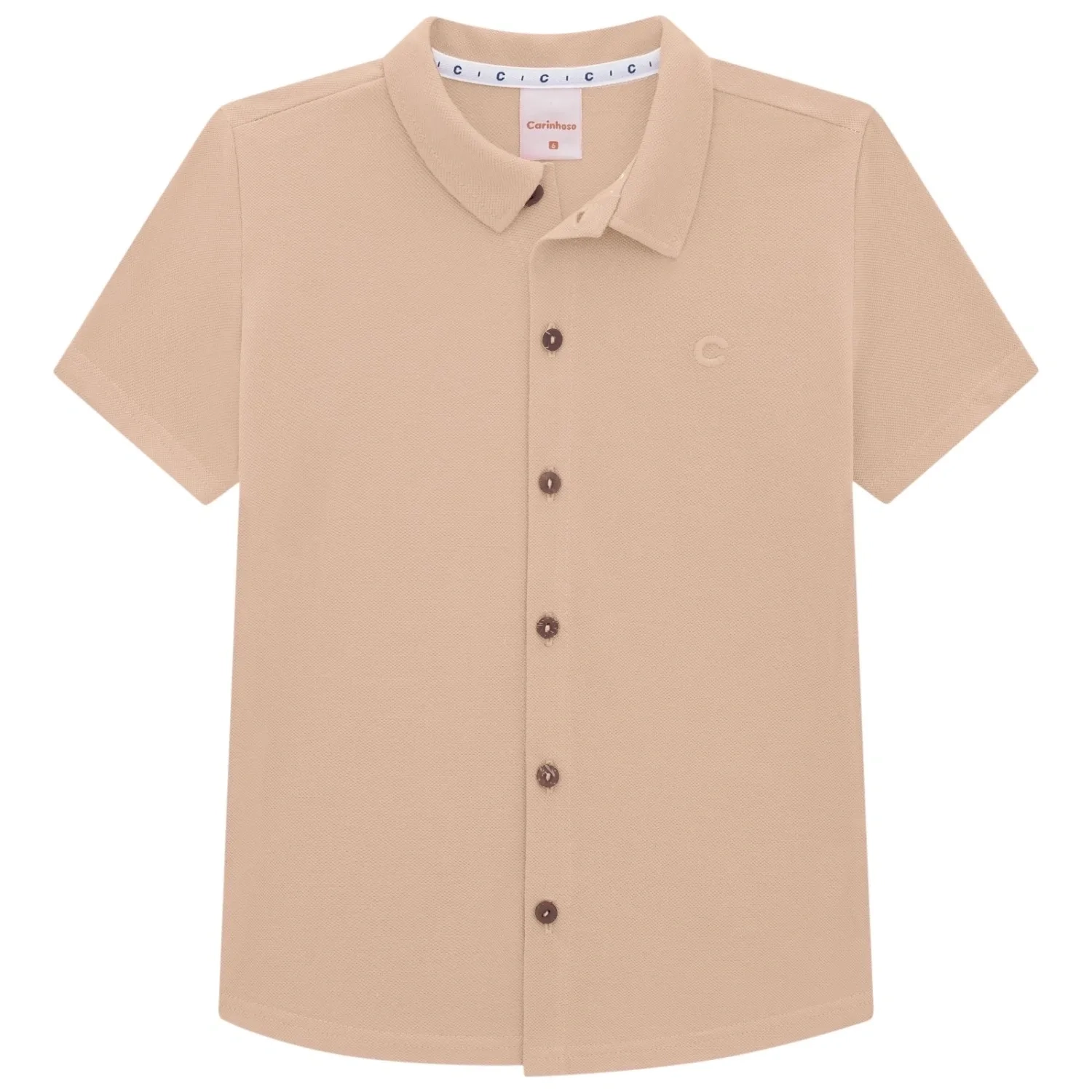 Boys' Premium Piqué Button-Up Shirt - Tan Brown