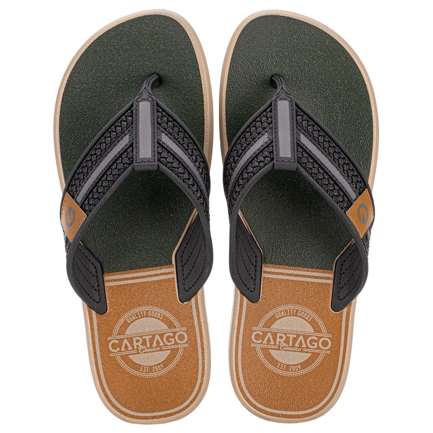 Cartago, a Brazilian brand renowned for blending comfort, style, and practicality in casual footwear, presents the Men's FlipFlop Palermo in Beige and Green. Established in 1990, Cartago offers this versatile flip-flop featuring a medium-height, comfortable sole and a stylish upper with a woven texture design that adds a touch of elegance to everyday wear. Crafted from high-quality rubber with a vulcanized finish, these flip-flops are ideal for daily use and informal activities, providing both durability and a fashionable look.
