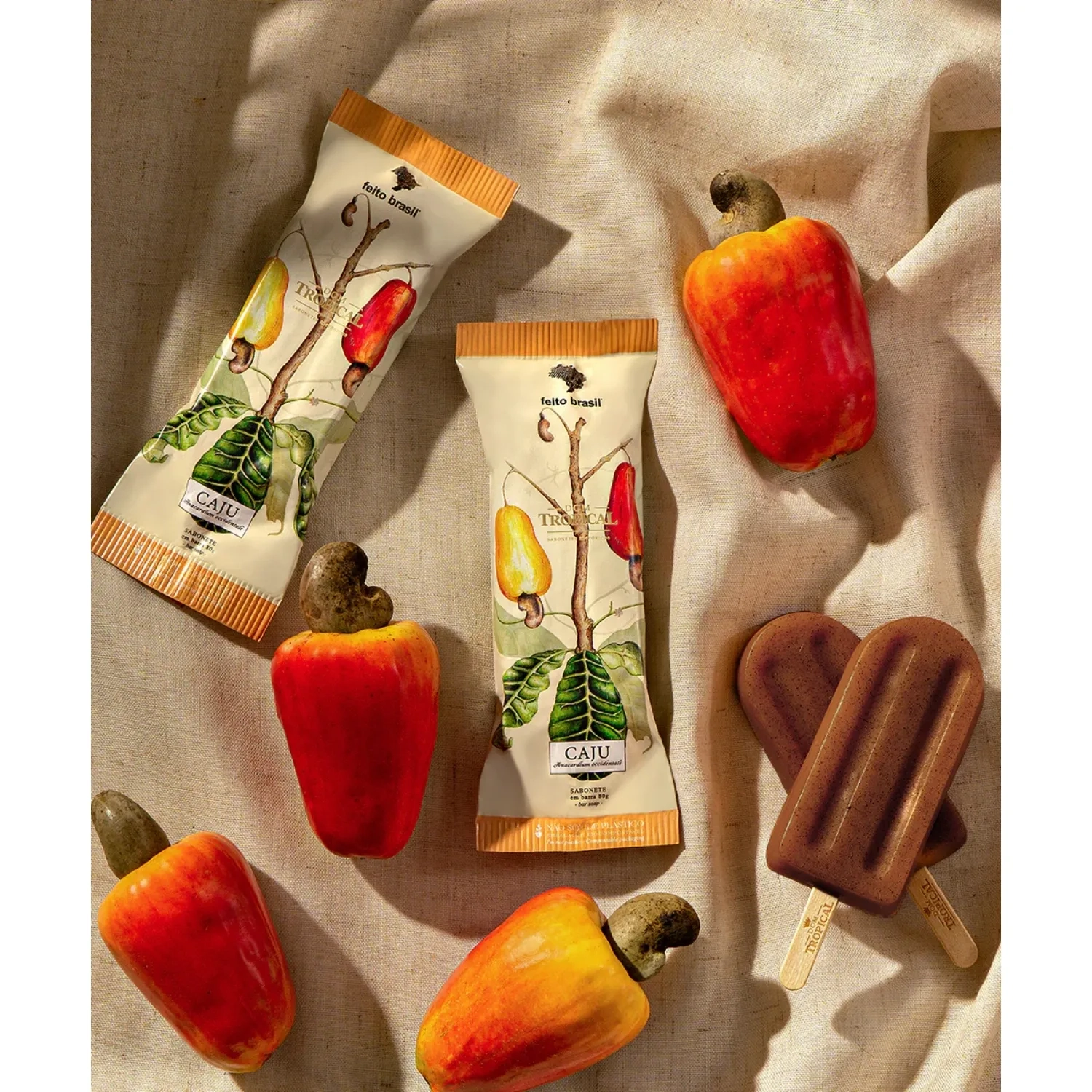 Dom Tropical presents a selection of bar soaps in fun popsicle shapes, designed to make your bath time even more enjoyable! These soaps are available in three different exfoliation levels and a variety of fragrances, including Guava, Passion Fruit, Soursop, Cashew, and Jabuticaba.