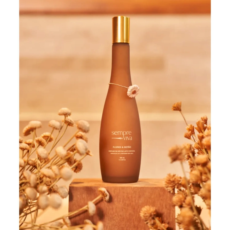 Scented Hydration and Renewal for Your Skin Discover the secret to irresistibly scented and soft skin with the Flowers & Buds Perfume Nectar Body Lotion. This body lotion offers an enveloping fragrance and intense hydration, leaving your skin delicately scented and deeply nourished. Contents: 100mL | Eau de Parfum This intensely scented body milk instantly hydrates skin, leaving it feeling soft and smooth for a long time. Its restorative formula penetrates deeply into the skin, hydrating dry areas and revitalizing skin, leaving it looking radiant and healthy. Benefits Intensely perfumes the skin, leaving it with a long-lasting fragrance. Powerful and restorative hydration for the skin. Formulated with Brazilian active ingredients for an authentic experience. Moisturizes dry areas, providing softness and smoothness. Fluid texture that doesn't leave the skin oily, making it ideal for daily use. How to use: Shake the product before use and apply to the body , massaging gently until completely absorbed. Feel fragrant and hydrated all day long, with a delicate and long-lasting fragrance. Ingredients that moisturize, protect and perfume the skin: Everlasting Extract: protects against free radicals and prevents premature aging, leaving skin firmer and younger. Juá Raspas Extract: prevents acne, boils and other infections and fights mycoses and other fungal infections. Cottonseed Oil: prevents dryness and leaves skin soft and provides nutrients for skin health. Camelina Oil: rich in omega 3 and 6, moisturizes and nourishes the skin. It's not scented water, it's perfume! "Eau de parfum" is reserved for products with a high concentration of fragrance. Ideal for those seeking an intense, long-lasting fragrance that leaves a lasting mark wherever it goes. Fragrance Enjoy an enveloping fragrance with citrus notes of orange, mandarin, and bergamot, combined with the softness of jasmine, gardenia, and lily of the valley, and a woody touch of patchouli and white cedar. Includes exclusive craftsmanship Each package is accompanied by a unique piece of ceramic, carefully crafted by the talented artisans of Cachoeira do Fanado, adding an authentic touch and a unique cultural connection to your daily care experience. Try the Flowers & Buds Body Milk Nectar Perfume and immerse yourself in a unique sensory experience. Inspired by the Sempre-Viva harvest in the Jequitinhonha Valley, the Sempre-Viva Collection products connect you with the beauty and richness of the region.