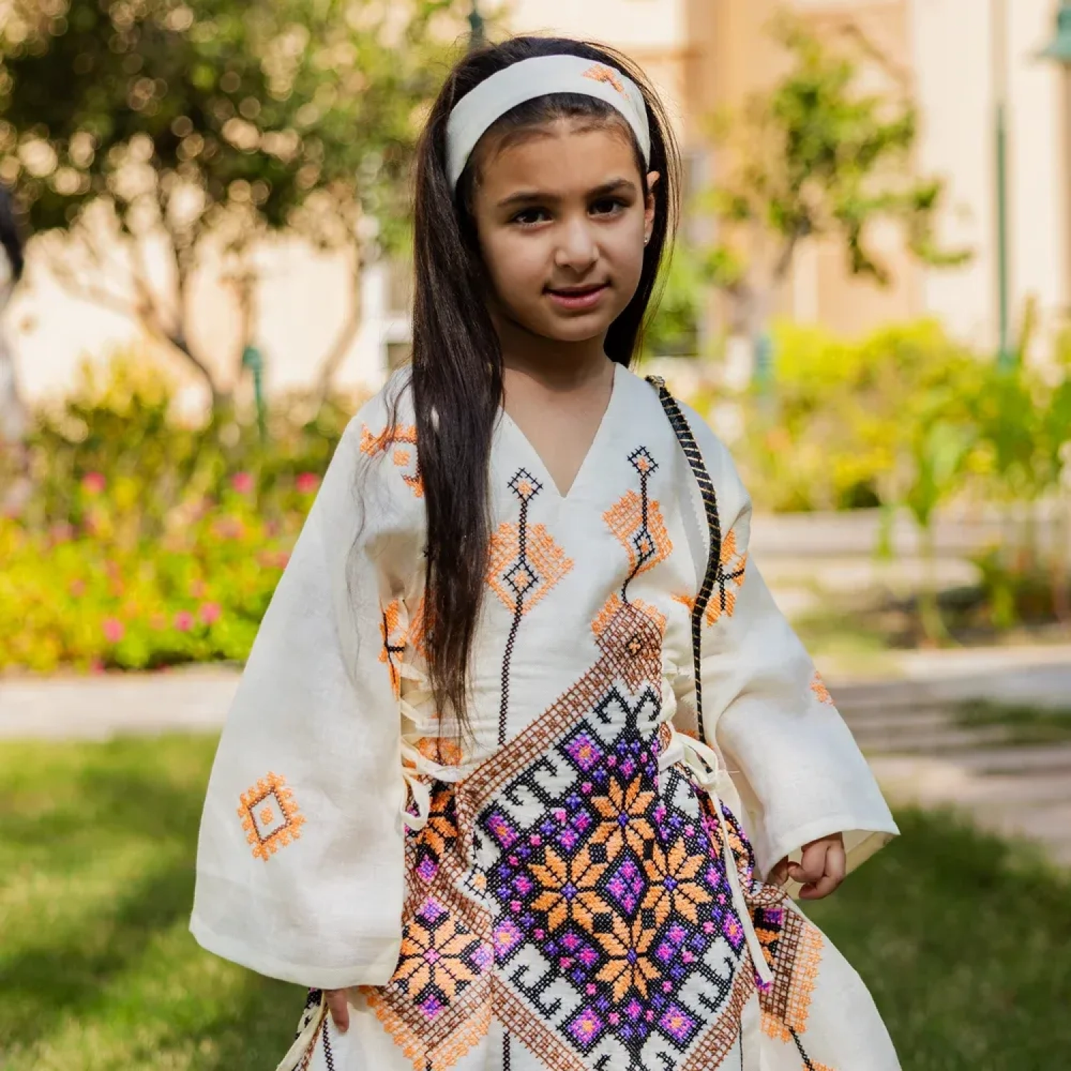 Let your little one shine in this creamy off-white linen dress! Designed with a twirl-worthy shape and beautiful patterned stitching, it’s the perfect pick for Garangao and festive parties. It’s light, airy, and so comfy for a full day of treats and fun.