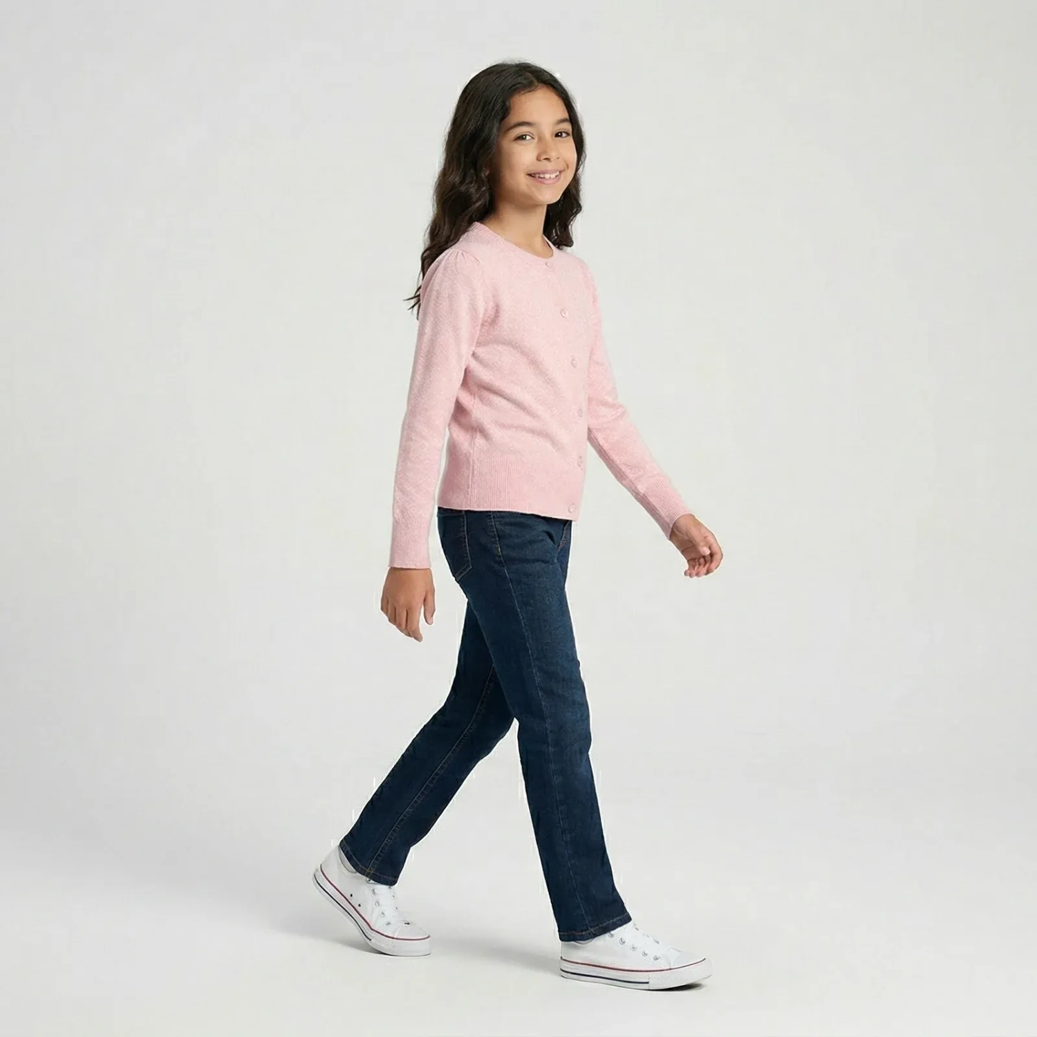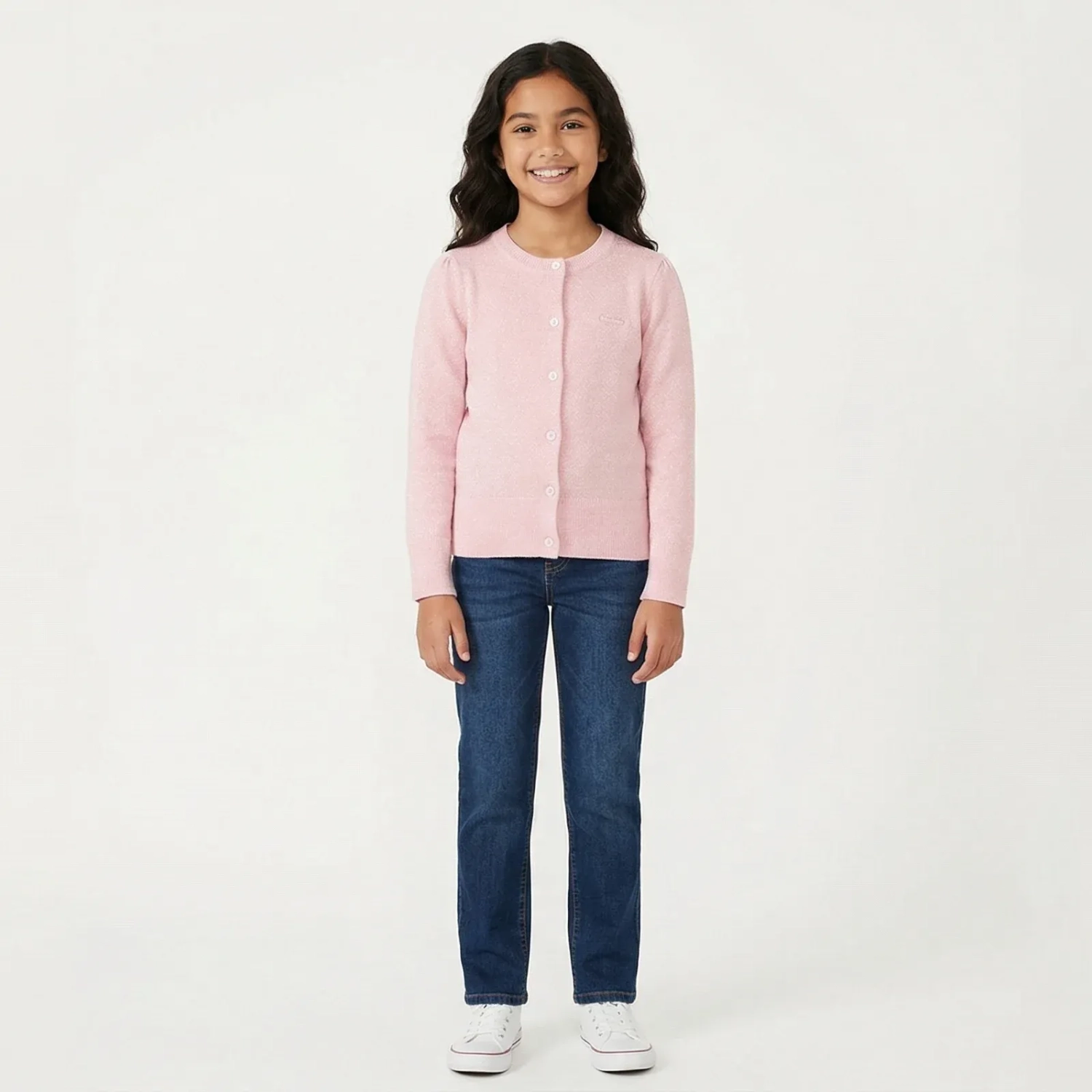 Girls' Knit Cardigan – Round Neck with Lurex Shine - Baby Pink