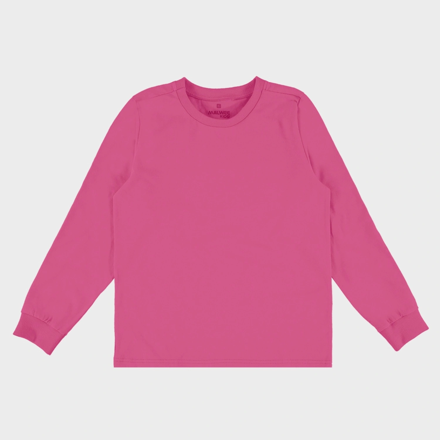 Girls'Long Sleeve Cotton T-Shirt – Classic Fit - Dark Pink