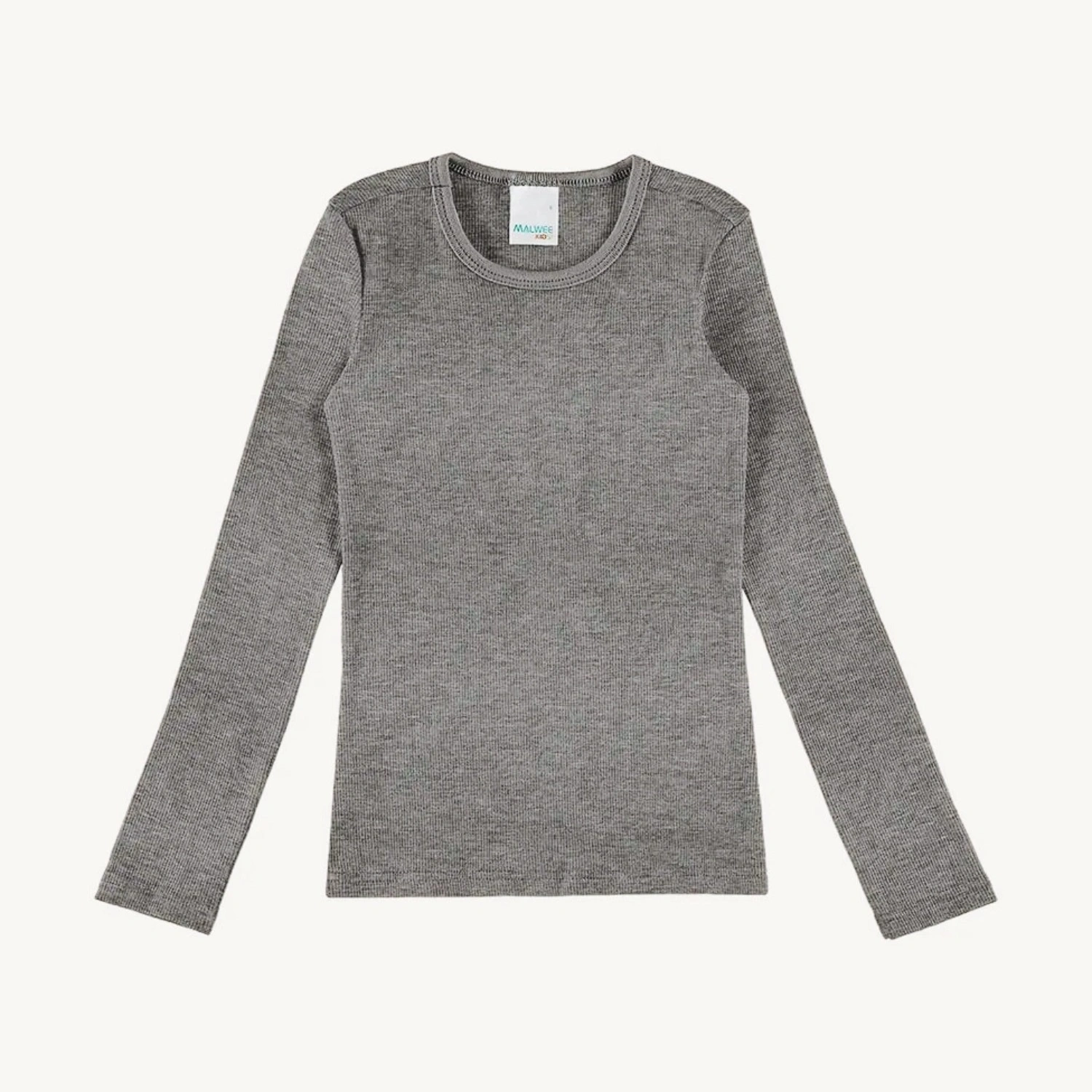 This dark grey long sleeve top for girls is made from soft ribbed knit with a classic round neckline. Comfortable and easy to style, it’s a versatile essential for layering or wearing solo in any season.